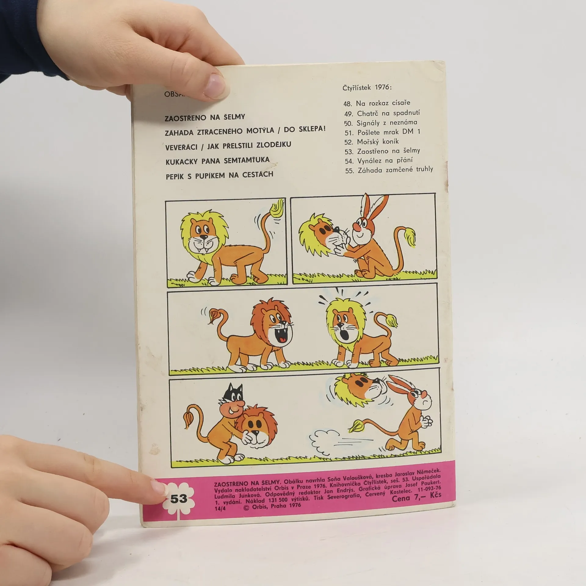 Skladem máme celkem knihy Čtyřlístek 53. Zaostřeno na šelmy (1976).