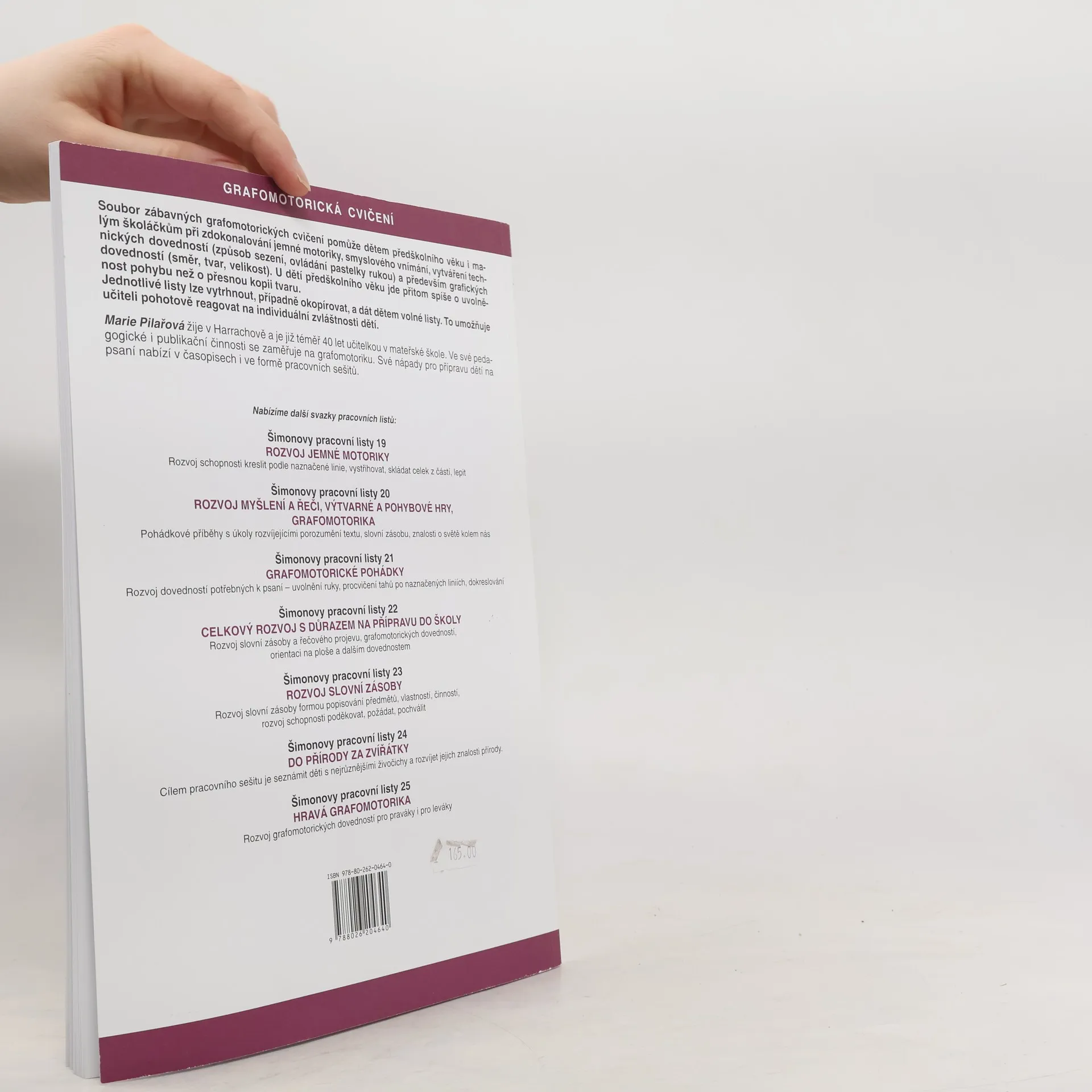 Soubor zábavných grafomotorických cvičení pomůže dětem předškolního věku i malým školákům při zdokonalování jemné motoriky, smyslového vnímání, vytváření technických dovedností (způsob sezení, ovládání pastelky rukou) a především grafických dovedností (směr, tvar, velikost). U dětí předškolního věku jde přitom spíše o uvolněnost pohybu než o přesnou kopii tvaru. Jednotlivé listy lze vytrhnout, případně okopírovat, a dát dětem volné listy. To umožňuje učiteli pohotově reagovat na individuální zvláštnosti dětí.