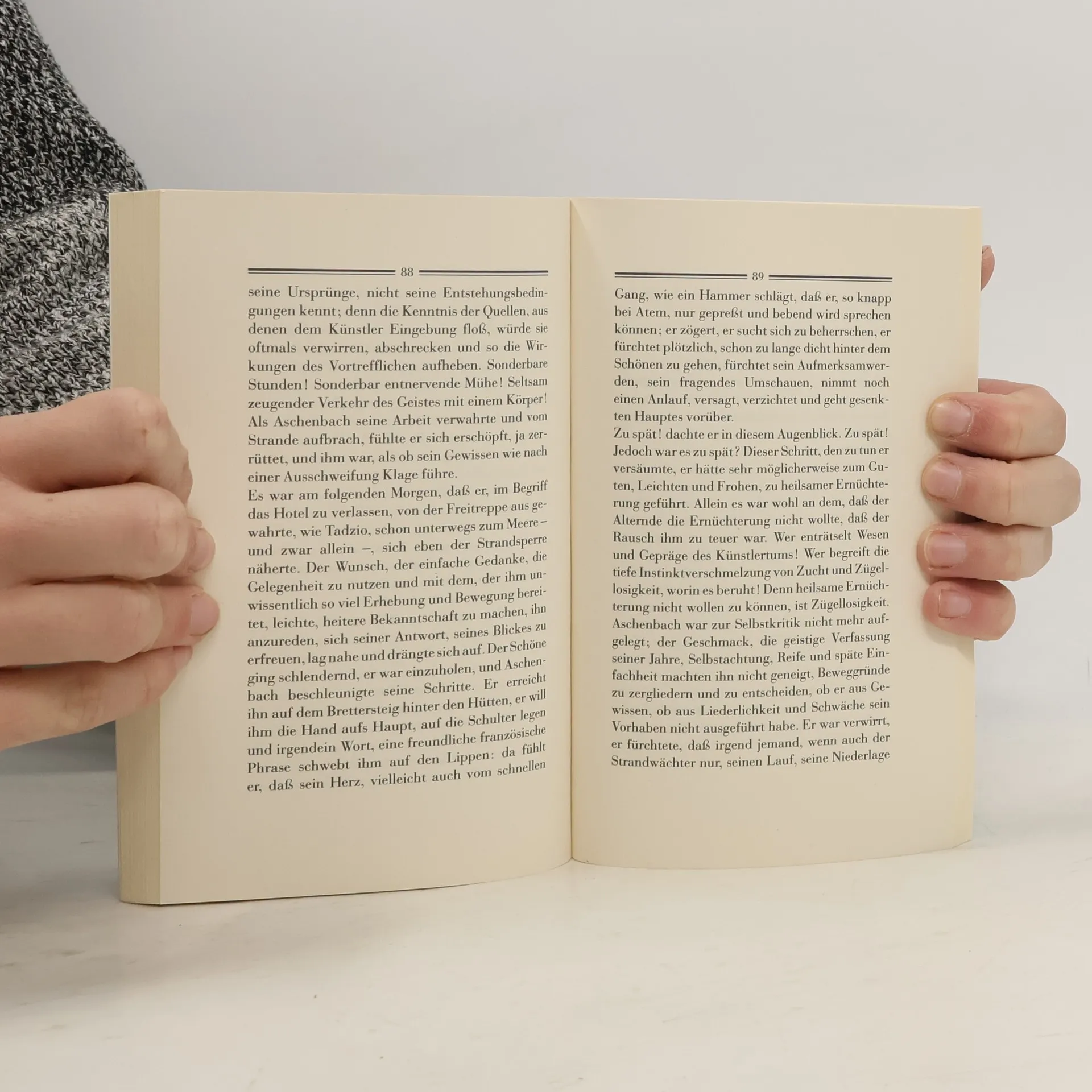 Ein edler, leidenschaftlicher Mann, gezeichnet und von einer dunklen Ausnahme geprägt, wird von Thomas Mann in einer Novelle dargestellt, die sich mit dem plötzlichen Einbruch der Leidenschaft in das Leben eines homoerotisch veranlagten Menschen beschäftigt. Gustav Aschenbach, ein nicht mehr junger Schriftsteller, entdeckt am Lido in Venedig den apollinisch schönen Knaben Tadzio. In seinen Gedanken steigert sich Aschenbach in eine unerfüllbare Liebe zu Tadzio und riskiert damit, was ihm am wünschenswertesten erscheint. Thomas Mann erklärte später, dass Aschenbachs Sehnsucht nach Tadzio das Problem der Schönheit widerspiegelt, bei dem der Geist das Leben als Schönheit empfindet. Der Geist, der liebt, ist nicht fanatisch, sondern wirbt mit einer erotischen Ironie um das Objekt seiner Begierde. Mann wollte seine Novelle als eine Übersetzung eines der schönsten Liebesgedichte der Welt ins Kritisch-Prosaische verstanden wissen, dessen Schlussstrophe mit den Worten beginnt: „Wer das Tiefste gedacht, liebt das Lebendigste.“ In dieser Erzählung wird die komplexe Beziehung zwischen Schönheit, Liebe und dem Streben nach unerreichbaren Idealen thematisiert, während Aschenbachs innere Konflikte und seine Suche nach Erfüllung im Mittelpunkt stehen.