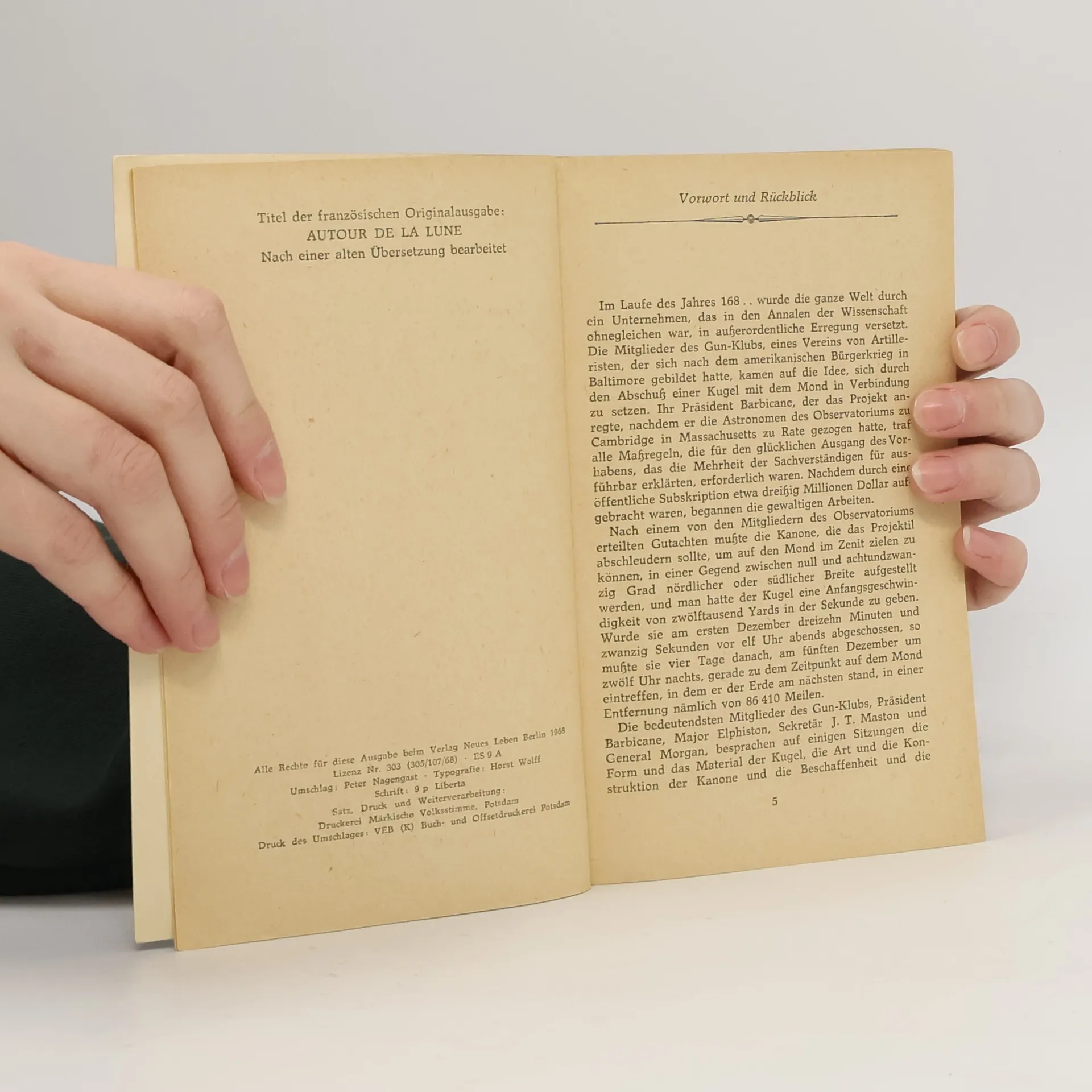 Vernes Mondreise nimmt die wirkliche Mondexpedition um mehr als hundert Jahre vorweg. Aber das Mondfahrzeug in seinem Roman verfehlt sein Ziel und kreist mit hoher Geschwindigkeit um den Mond. Das Werk schildert den verzweifelten Versuch der Raumfahrer, ihrem Schicksal zu entgehen. Der Roman gilt nicht nur als ein frühes Beispiel der Science-fiction, sondern enthält viele Fakten aus den verschiedensten Gebieten und intensive astronomische Dispute, so daß das Werk nebst der Unterhaltung auch einen großen Reichtum an Wissen bietet.