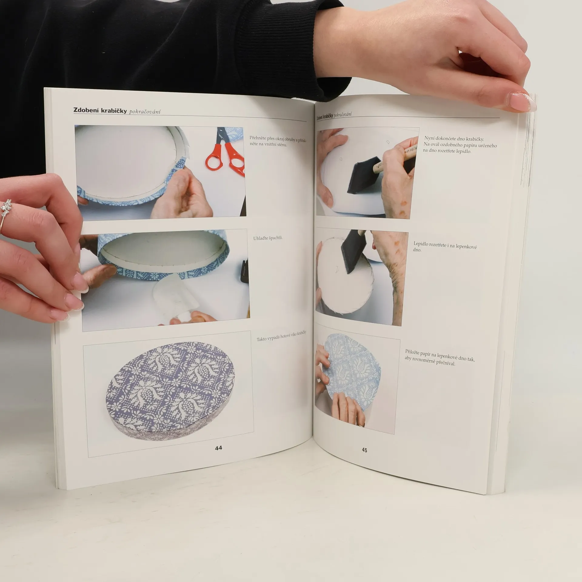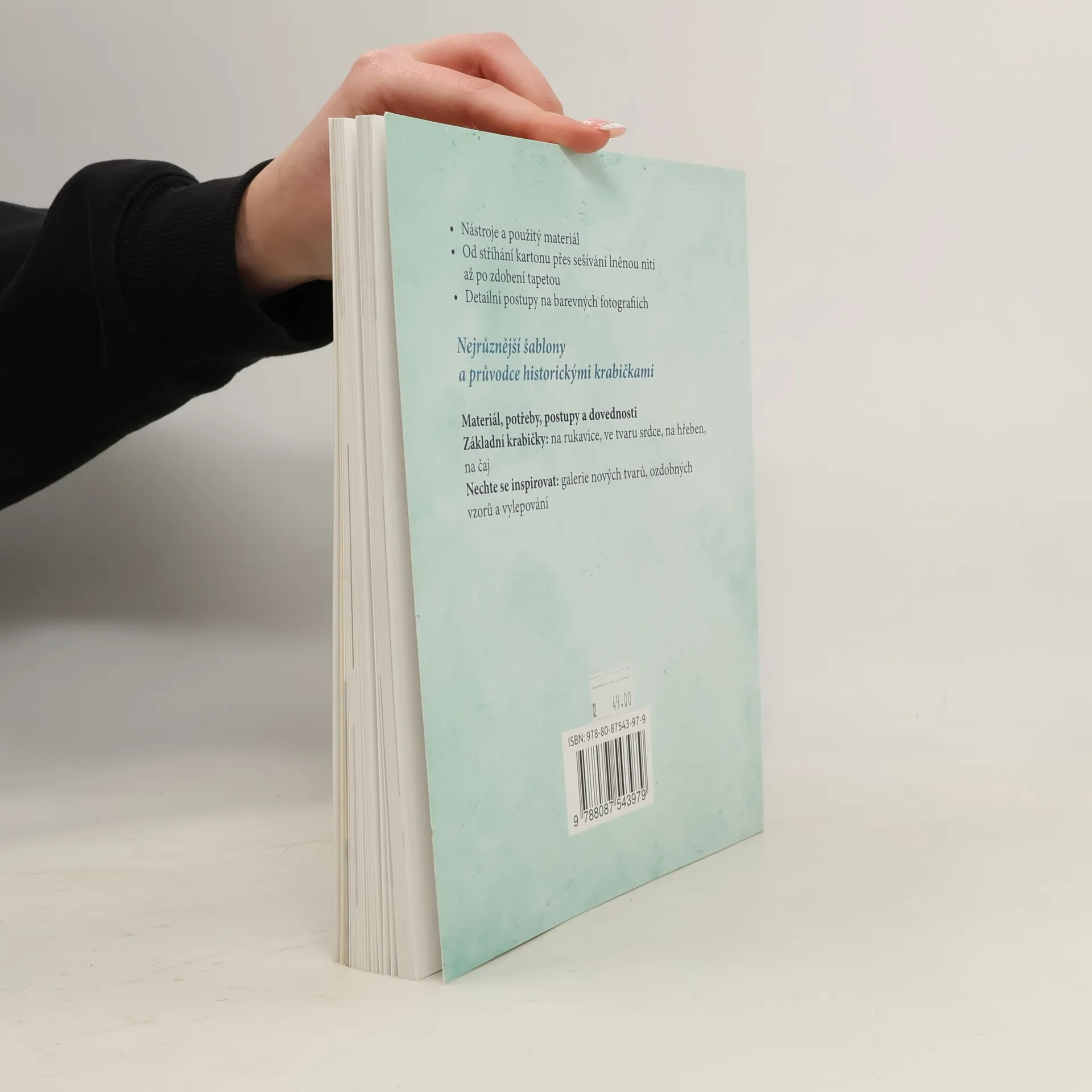 Krabičky se tradičně vyrábějí z tvrdého kartonu, sešívají lněnou nití, zdobí odřezky tapet a zevnitř vykládají novinami. Podle detailních návodů si můžete vybrat nápodobu klasických vzorů a tvarů nebo si navrhnete své vlastní, sloužící specifickému účelu. Všechny postupy dokumentují barevné fotografie. Nechte se inspirovat a zhotovte si podle nejrůznějších šablon krabičky na rukavice, na hřebeny, na čaj, na drobnosti, na klobouky.