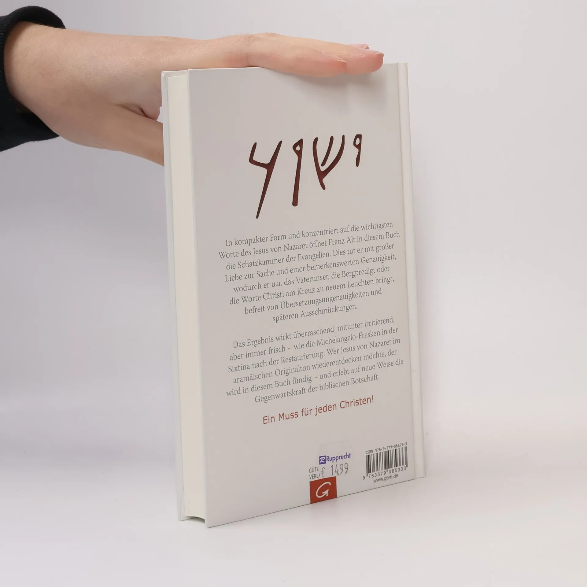 Jesus neu lesen und wieder besser verstehenIn kompakter Form und konzentriert auf die wichtigsten Worte des Jesus von Nazaret öffnet Franz Alt nun in seinem neuen Buch die Schatzkammer der Evangelien. Dies tut er mit großer Liebe zur Sache und einer bemerkenswerten Genauigkeit, wodurch er u.a. das Vaterunser, die Bergpredigt oder die Worte Christi am Kreuz zu neuem Leuchten bringt, befreit von Übersetzungsungenauigkeiten und späteren Ausschmückungen. Das Ergebnis wirkt überraschend, mitunter irritierend, aber immer frisch – wie die Michelangelo-Fresken in der Sixtina nach der Restaurierung. Wer Jesus von Nazaret im aramäischen Originalton wiederentdecken möchte, der wird in diesem Buch fündig – und erlebt auf neue Weise die Gegenwartskraft der biblischen Botschaft. Ein Muss für jeden Christen! Und ein Buch, das auf jeden Gabentisch gehört!