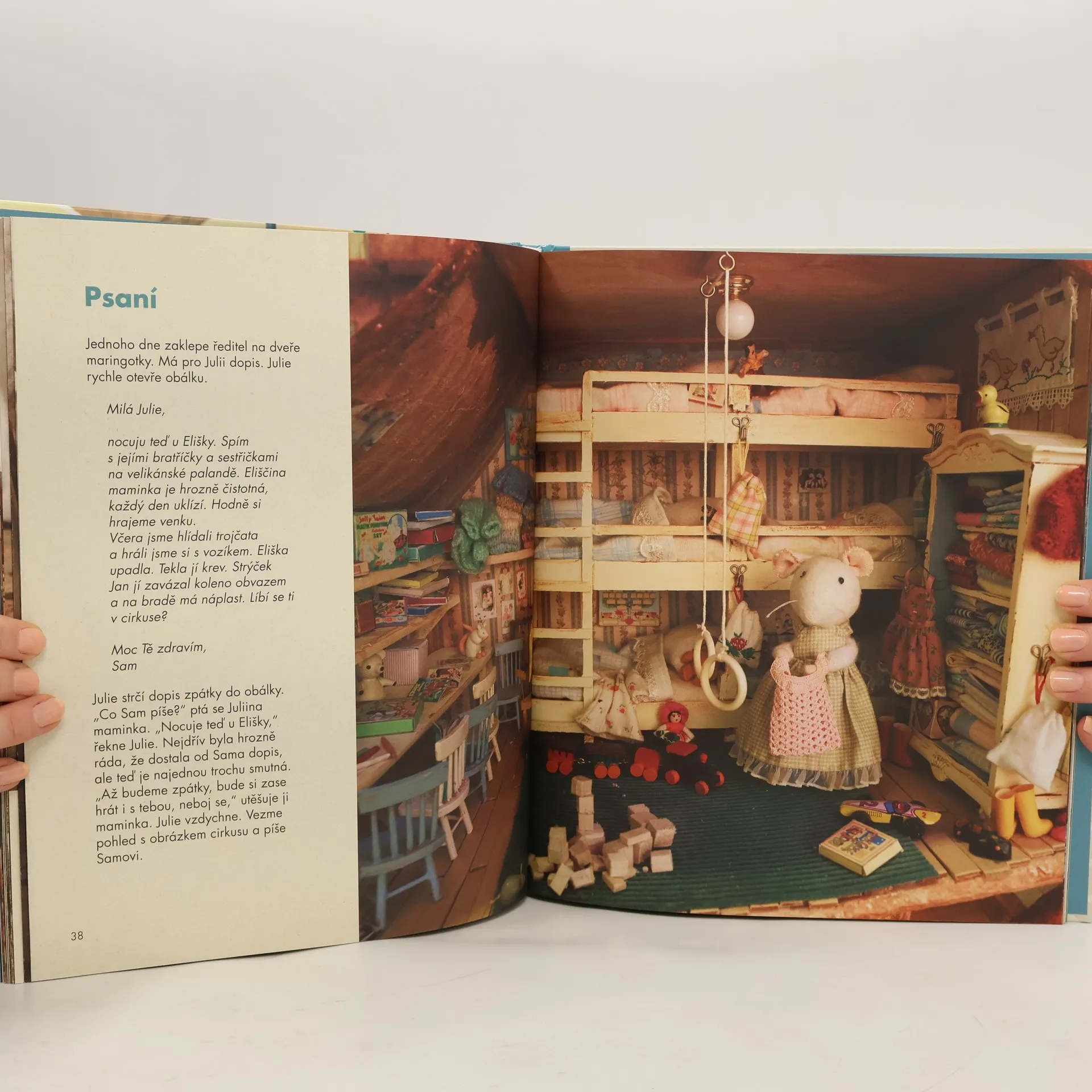 Myšky Sam a Julie se seznámily v Domě myšek, kde obě bydlí. Ačkoli jsou každý úplně jiný, vlastně naprosté opaky, stala se znich nerozlučná dvojka. Když se tedy Julie a její maminka vydávají na letní putování s cirkusem, Julie o tom Samovi všecko píše v dopisech. Jak je to tam barevné a napínavé. Jak si našla kamaráda klauna Enrika. Jak se přátelí s akrobatkou Sylvanou, která umí neuvěřitelné kousky na visuté hrazdě. A Sam? Ten zase píše jí o tom, co je nového v Domě myšek, který nikdy nespí. Ponořte se znovu do poutavého příběhu dvou kamarádů v ručně vyráběném kouzelném světě. Karina Schaapman ve své knize vychází z vlastních vzpomínek na mládí, kdy sama jezdila s cirkusem. V tomto příběhu se objevuje nejen legendární kartonový Dum myšek, který sama autorka vyrobila, ale také naprosto nový model cirkusového stanu. A jak je u autorky zvykem, těšit se můžete na ty nejmenší detaily, které čerpá z vlastních vzpomínek – obytné vozy, cirkusácké pomůcky i nejrůznější zvířectvo. Kromě toho nechala Karina Schaapman tentokrát zmenšit skutečné dopisy, fotografie i plakáty z dob svého mládí, díky kterým je dobrodružství Sama a Julie ještě reálnější.