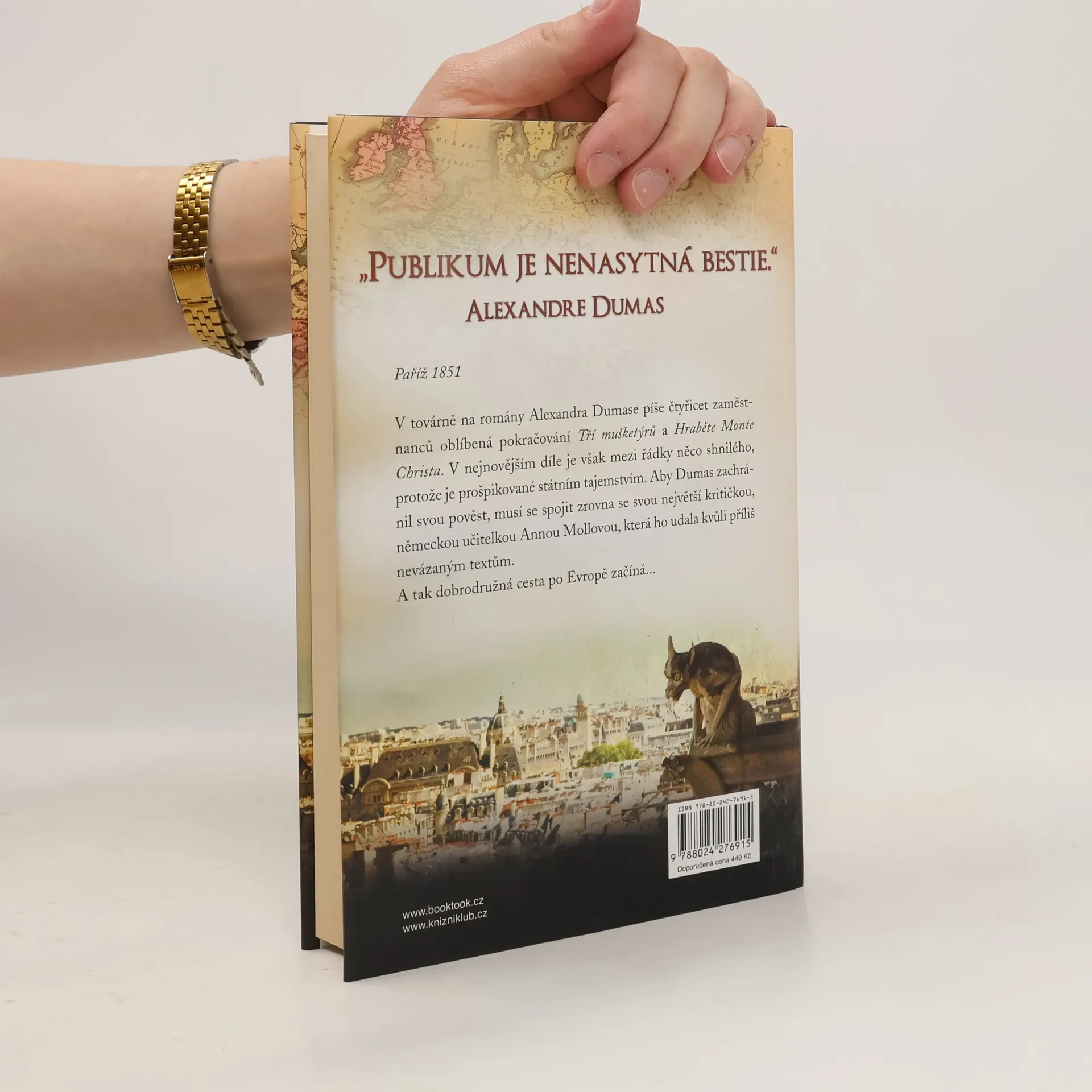 Paříž 1851. V továrně na romány Alexandra Dumase píše čtyřicet zaměstnanců oblíbená pokračování Tří mušketýrů a Hraběte Monte Christa. V nejnovějším díle je však mezi řádky něco shnilého, protože je prošpikované státním tajemstvím. Aby Dumas zachránil svou pověst, musí se spojit zrovna se svou největší kritičkou, německou učitelkou Annou Mollovou, která ho udala kvůli příliš nevázaným textům. A tak jejich dobrodružná cesta po Evropě začíná Tento román Dirka Husemanna získal v roce 2020 v Německu titul KNIHA ROKU.
