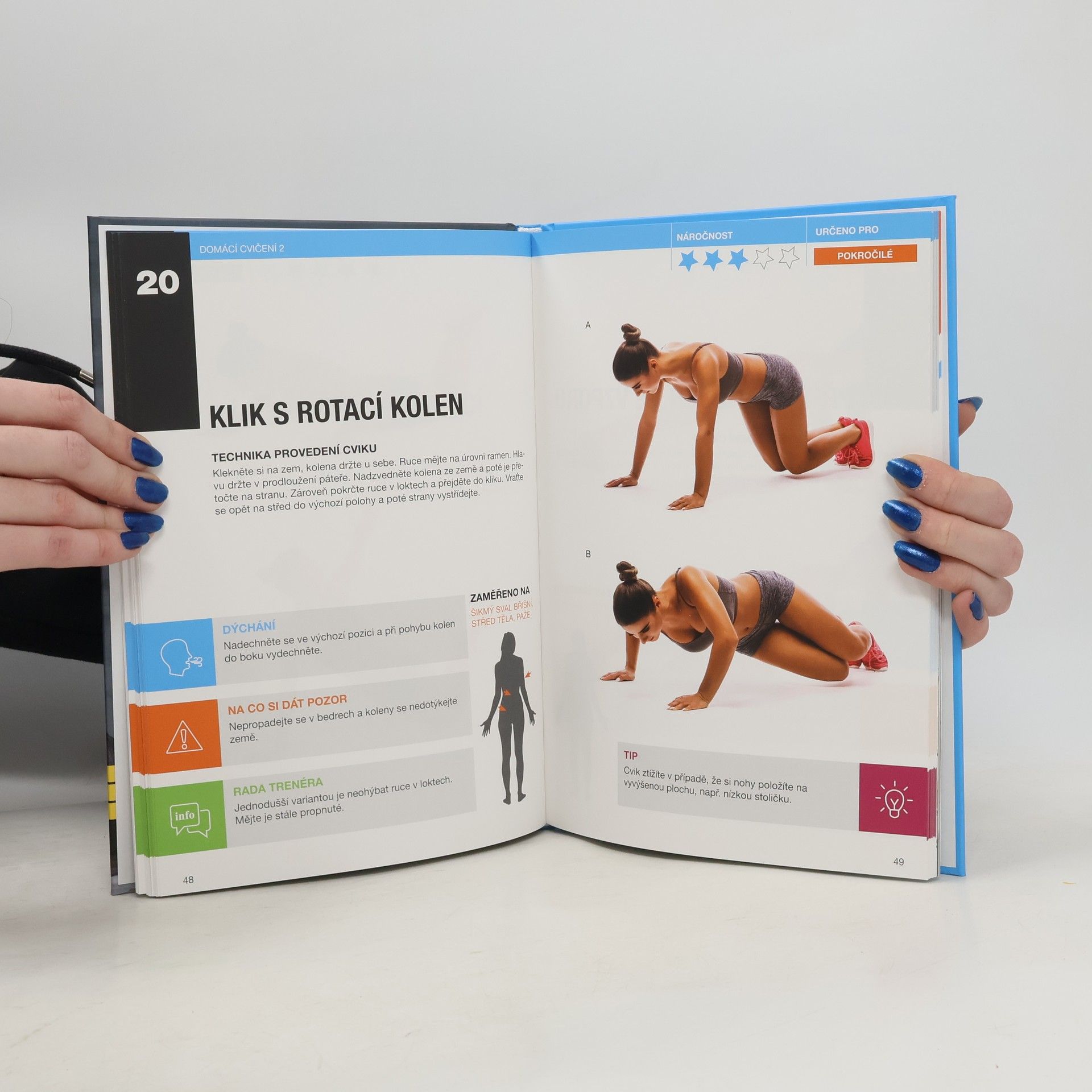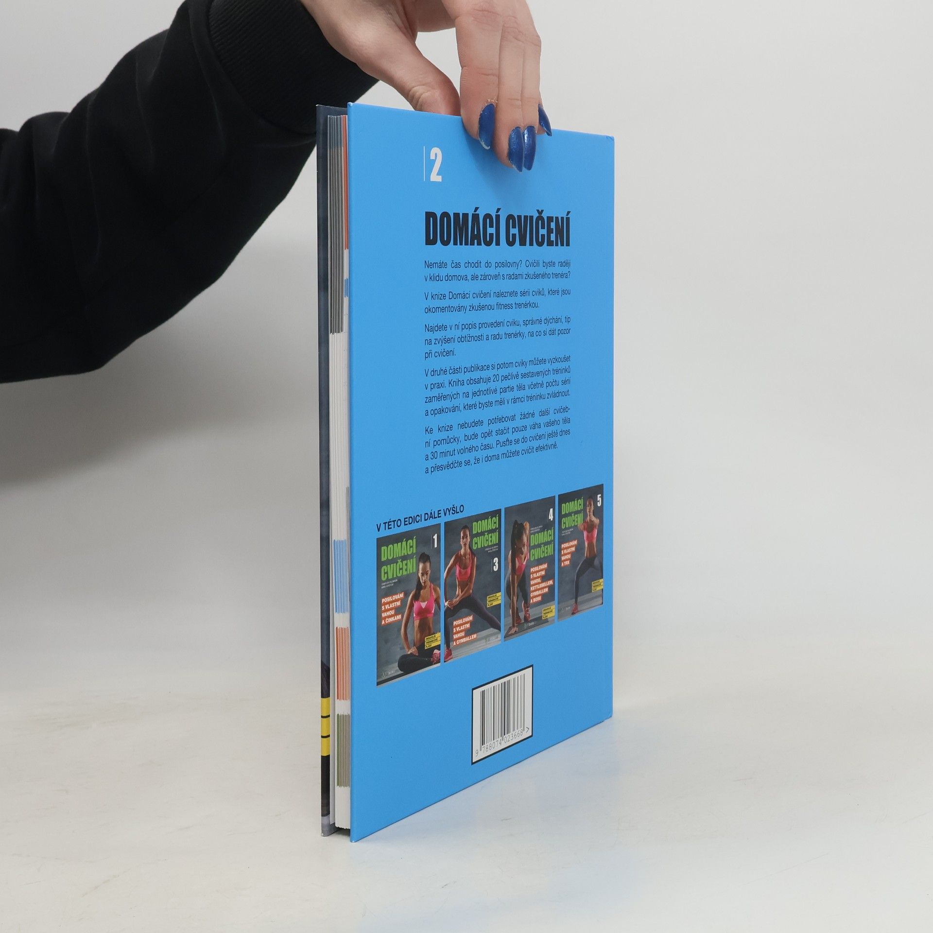 Nemáte čas chodit do posilovny? Cvičili byste raději v klidu domova, ale zároveň s radami zkušeného trenéra? V knize Domácí cvičení naleznete sérii cviků, které jsou okomentovány zkušenou fitness trenérkou. Najdete v ní popis provedení cviku, správné dýchání, tip na zvýšení obtížnosti a radu trenérky, na co si dát pozor při cvičení. V druhé části publikace si potom cviky můžete vyzkoušet v praxi. Kniha obsahuje 20 pečlivě sestavených tréninků zaměřených na jednotlivé partie těla včetně počtu sérií a opakování, které byste měli v rámci tréninku zvládnout. Ke knize nebudete potřebovat žádné další cvičební pomůcky, bude opět stačit pouze váha vašeho těla a 30 minut volného času. Pusťte se do cvičení ještě dnes a přesvědčte se, že i doma můžete cvičit efektivně.