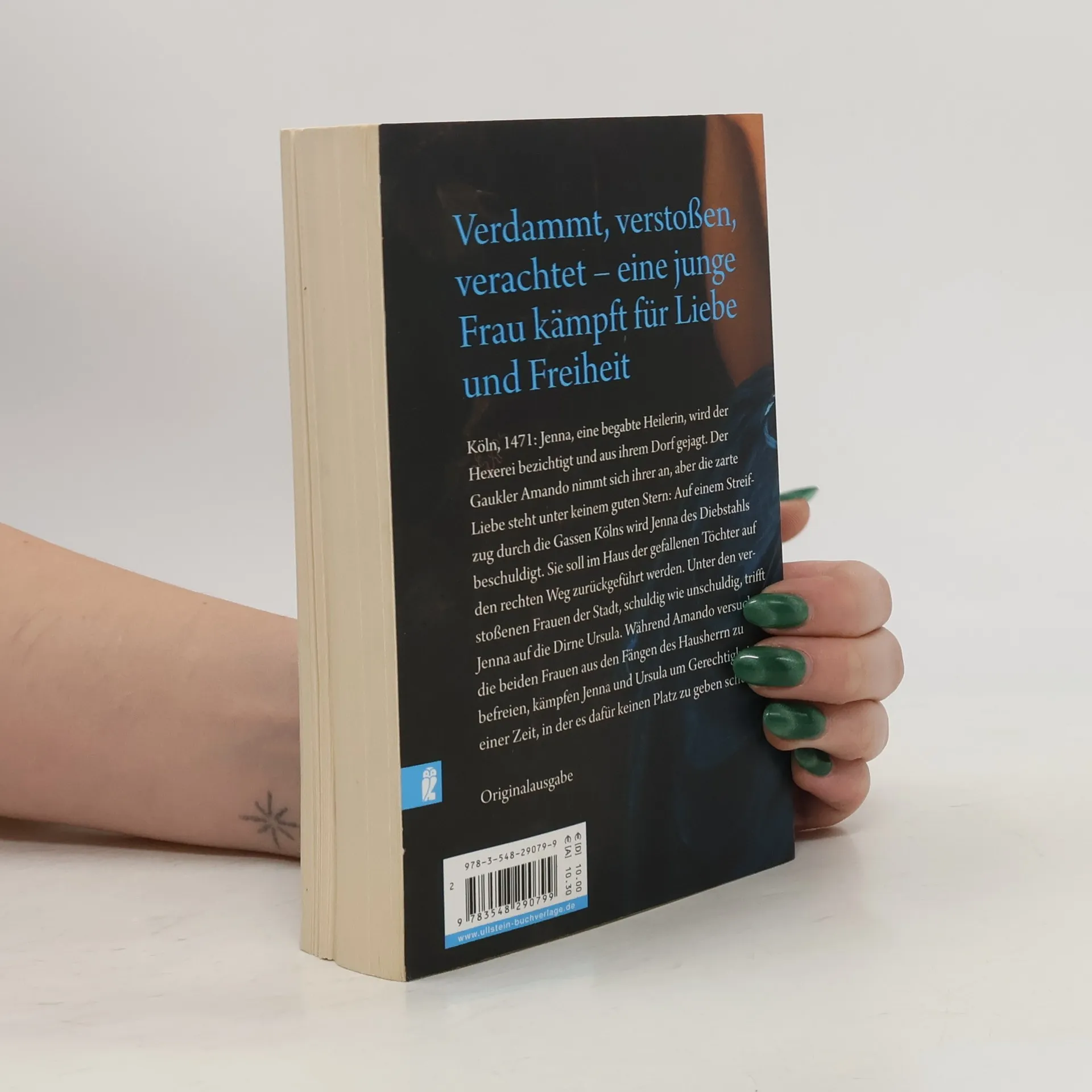 Verdammt, verstoßen, verachtet – eine junge Frau kämpft für Liebe und Freiheit Köln, 1471: Jenna, eine begabte Heilerin, wird der Hexerei bezichtigt und aus ihrem Dorf gejagt. Der Gaukler Amando nimmt sich ihrer an, doch die zarte Liebe steht unter keinem guten Stern: Auf einem Streifzug durch die Gassen Kölns wird Jenna des Diebstahls beschuldigt. Sie soll im Haus der gefallenen Töchter auf den rechten Weg zurückgeführt werden. Unter den verstoßenen Frauen der Stadt, schuldig wie unschuldig, trifft Jenna auf die Dirne Ursula. Während Amando versucht, die beiden Frauen aus den Fängen des Hausherrn zu befreien, kämpfen Jenna und Ursula um Gerechtigkeit in einer Zeit, in der es dafür keinen Platz zu geben scheint.