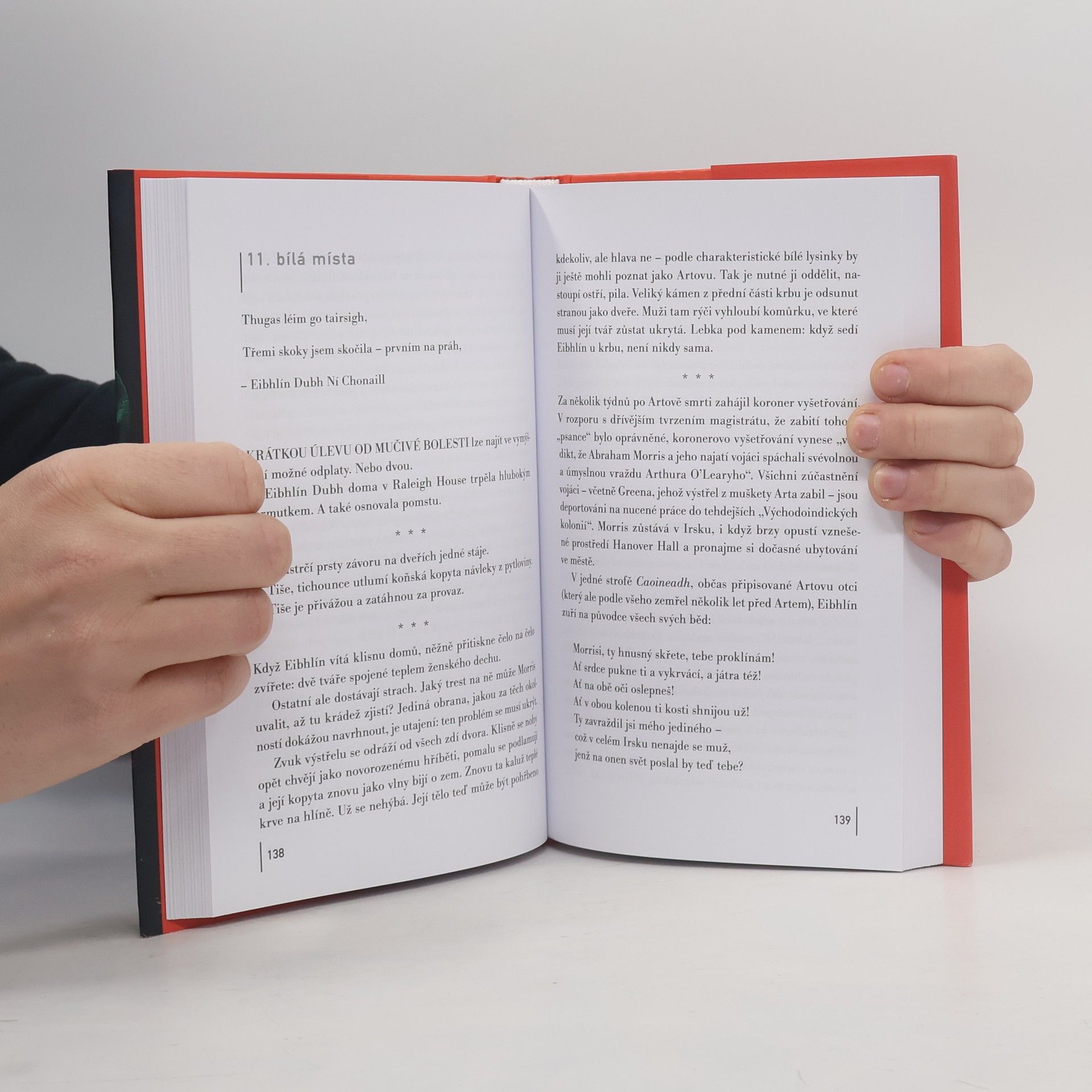 Prozaický debut irské básnířky splétá příběhy dvou žen, žijících ve stejné krajině v různých dobách. V 18. století najde šlechtična tělo svého zavražděného manžela, v zoufalství loká z dlaní jeho krev a složí neobyčejnou báseň. Dnešní mladá matka v té básni nachází ozvěny vlastního života a zcela propadne touze dopátrat se pravdy o záhadném osudu její autorky. Fascinující a nadčasový příběh o tom, jak je možné najít svůj hlas tím, že osvobodíte hlas toho druhého.