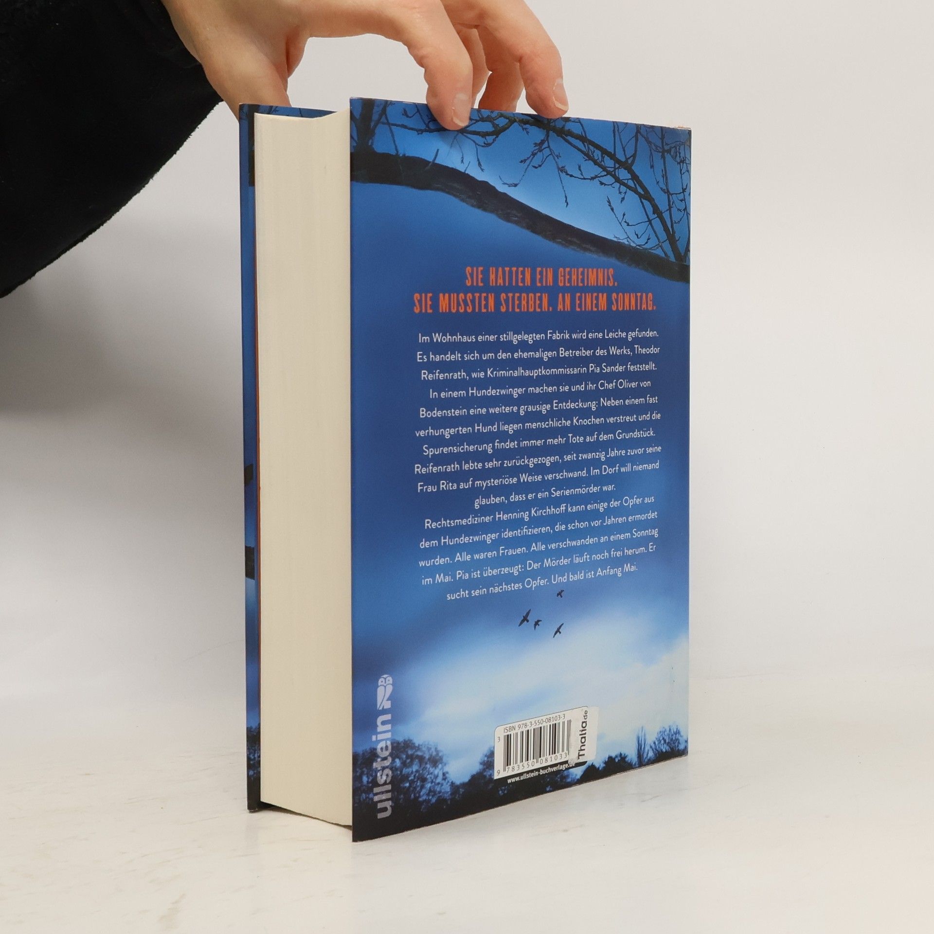 Sie hatten ein Geheimnis. Sie mussten sterben. An einem Sonntag. Der neue Bestseller von Nele Neuhaus Im Wohnhaus einer stillgelegten Fabrik wird eine Leiche gefunden. Es handelt sich um den ehemaligen Betreiber des Werks, Theodor Reifenrath, wie Kriminalhauptkommissarin Pia Sander feststellt. In einem Hundezwinger machen sie und ihr Chef Oliver von Bodenstein eine grausige Entdeckung: Neben einem fast verhungerten Hund liegen menschliche Knochen verstreut und die Spurensicherung fördert immer mehr schreckliche Details zutage. Reifenrath lebte sehr zurückgezogen, seit sich zwanzig Jahre zuvor seine Frau Rita das Leben nahm. Im Dorf will niemand glauben, dass er ein Serienmörder war. Rechtsmediziner Henning Kirchhoff kann einige der Opfer identifizieren, die schon vor Jahren ermordet wurden. Alle waren Frauen. Alle verschwanden an einem Sonntag im Mai. Pia ist überzeugt: Der Mörder läuft noch frei herum. Er sucht sein nächstes Opfer. Und bald ist Anfang Mai.