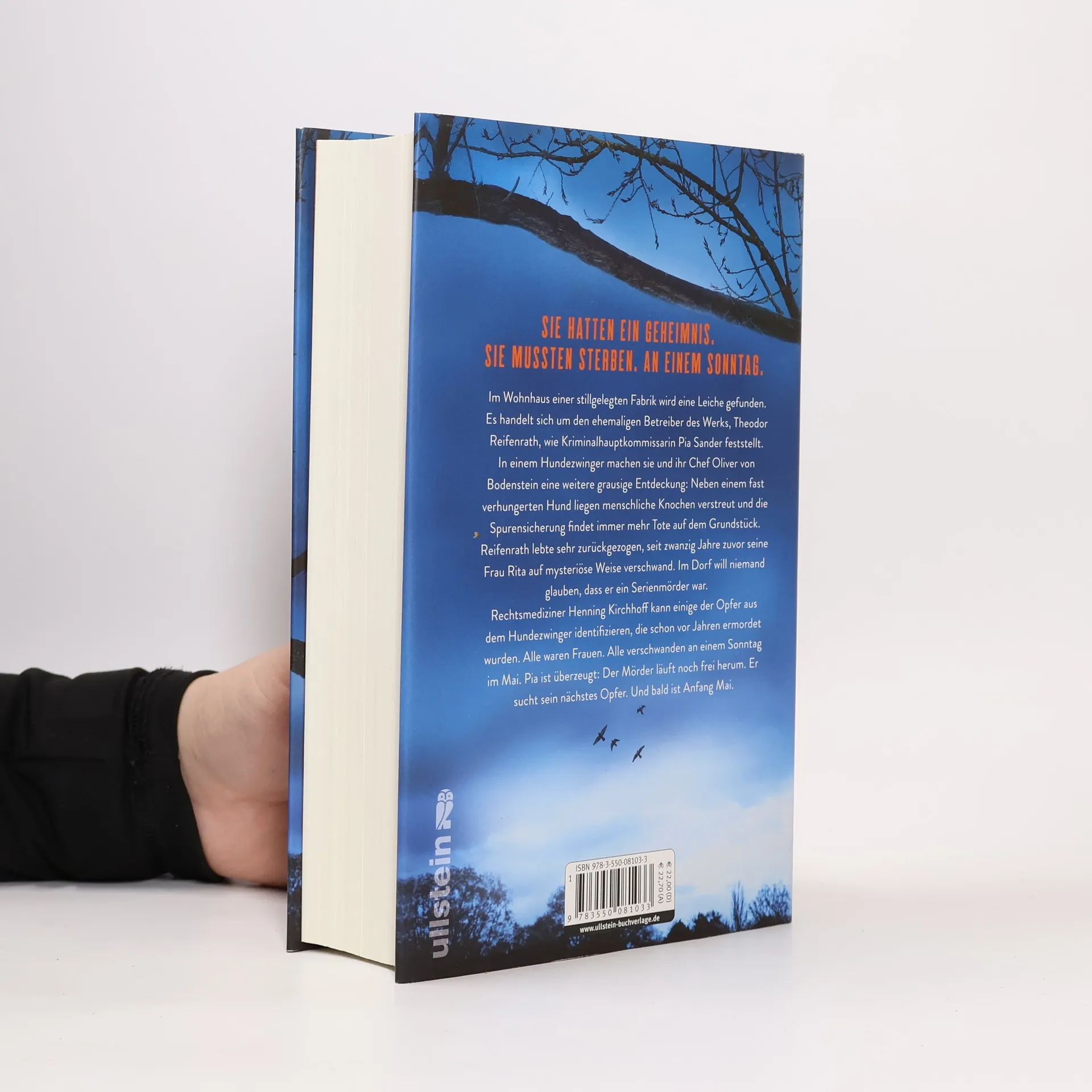 Sie hatten ein Geheimnis. Sie mussten sterben. An einem Sonntag. Der neue Bestseller von Nele Neuhaus Im Wohnhaus einer stillgelegten Fabrik wird eine Leiche gefunden. Es handelt sich um den ehemaligen Betreiber des Werks, Theodor Reifenrath, wie Kriminalhauptkommissarin Pia Sander feststellt. In einem Hundezwinger machen sie und ihr Chef Oliver von Bodenstein eine grausige Entdeckung: Neben einem fast verhungerten Hund liegen menschliche Knochen verstreut und die Spurensicherung fördert immer mehr schreckliche Details zutage. Reifenrath lebte sehr zurückgezogen, seit sich zwanzig Jahre zuvor seine Frau Rita das Leben nahm. Im Dorf will niemand glauben, dass er ein Serienmörder war. Rechtsmediziner Henning Kirchhoff kann einige der Opfer identifizieren, die schon vor Jahren ermordet wurden. Alle waren Frauen. Alle verschwanden an einem Sonntag im Mai. Pia ist überzeugt: Der Mörder läuft noch frei herum. Er sucht sein nächstes Opfer. Und bald ist Anfang Mai.