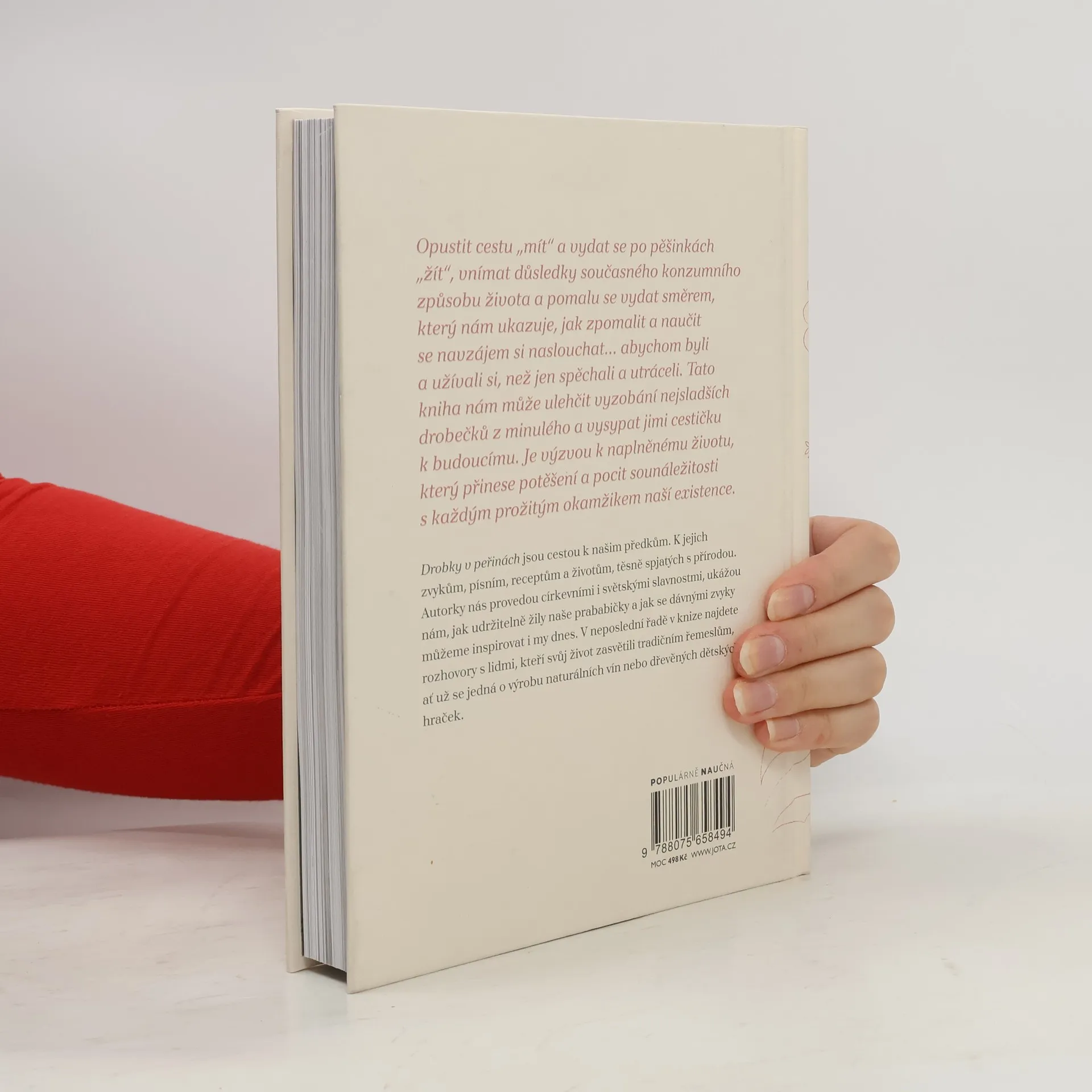 Autorky knihy přibližují život našich předků a s lehkostí a vtipem nabádají k osvojení dávných zvyků a rituálů, které vedou k vědomějšímu a spokojenějšímu životu v souladu s přírodou. Kapitola Nuda nebude po celý rok vás provede zvykoslovným rokem, popisuje tradice spojené s různými slavnostmi a nabízí alternativy, jak prožít rok zvyků dnes. V kapitole Jaký kroj, tak se stroj se autorky zaměřují na inspiraci od babiček, které recyklovaly oděv a oblékaly staré kousky nově. Dotýkají se udržitelné módy, ekotextilu a nových cest současného módního průmyslu. Kniha obsahuje rozhovory s lidmi, kteří našli smysl v tradičním řemeslu a začali vyrábět naturální vína nebo dřevěné hračky podporující zdravý pohyb dětí. Autorky vyzývají k opuštění cesty „mít“ a zaměření na „žít“, vnímat důsledky globální existence a učit se naslouchat. Tato kniha usnadňuje vyzobání sladkých drobečků z minulosti a ukazuje cestu k budoucnosti. Je výzvou k naplněnému životu, který přináší potěšení a pocit sounáležitosti s každým prožitým okamžikem.