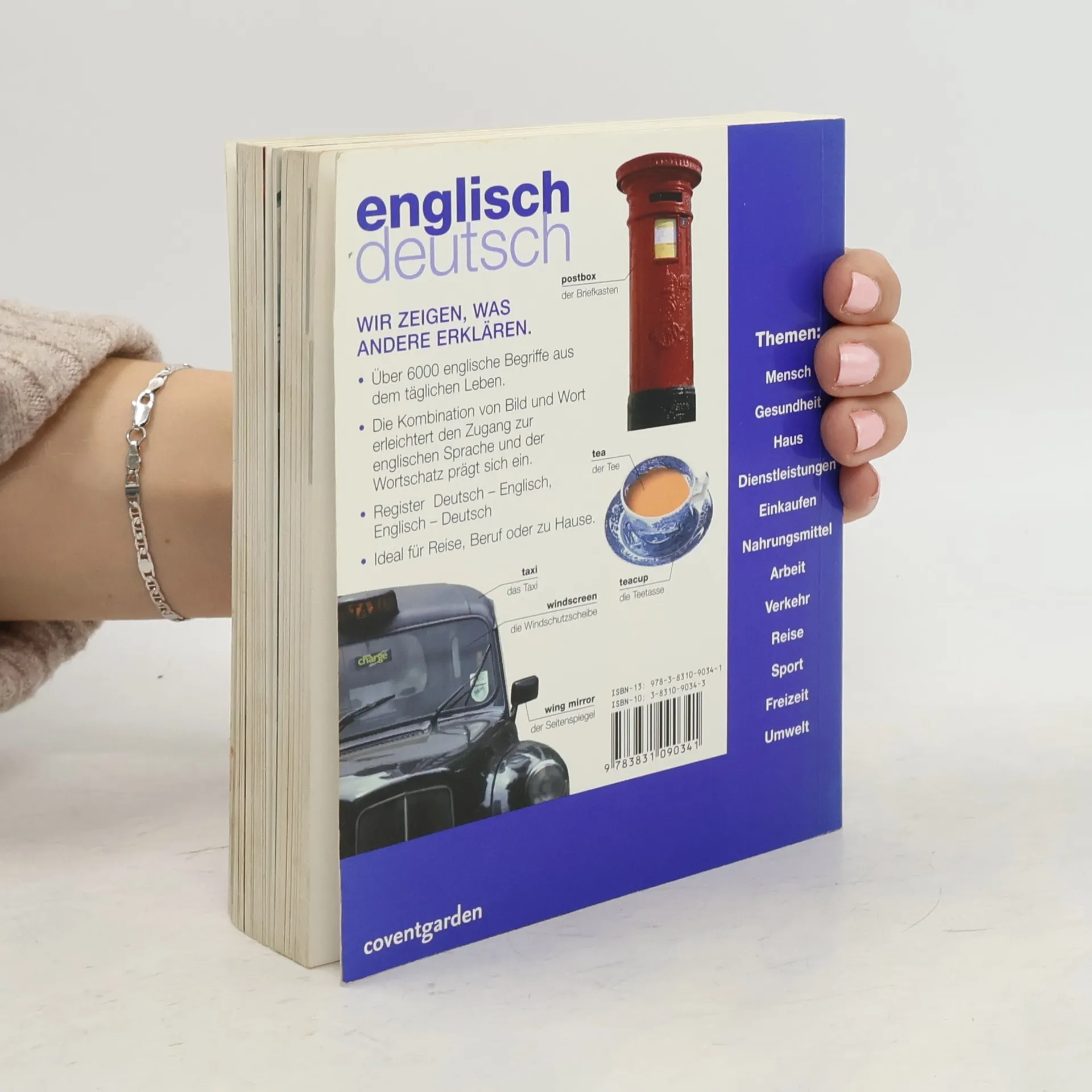 Dieses kompakte Bildwörterbuch stellt über 6.000 englische Begriffe und deren deutsche Übersetzung vor. Über 1600 farbige Fotografien und Grafiken sowie eine systematische Gliederung in verschiedene Bereiche des alltäglichen Lebens ermöglichen einen schnellen und lebendigen Zugang zur englischen Sprache. Informationskästen mit grammatischen Erläuterungen runden das Buch ab. Ein anschaulicher, praktischer und kompetenter Begleiter für Reise, Beruf und zum Nachschlagen zu Hause.