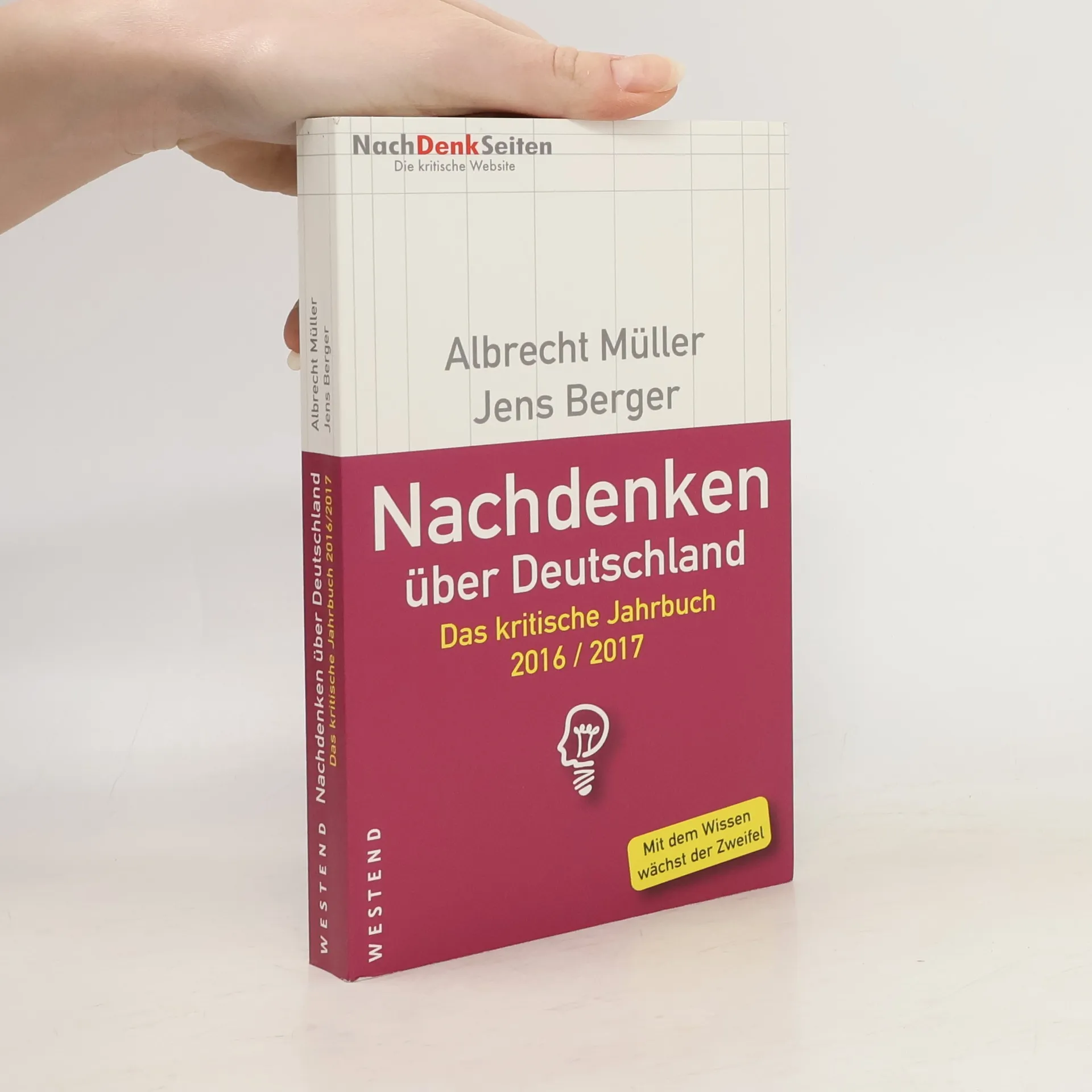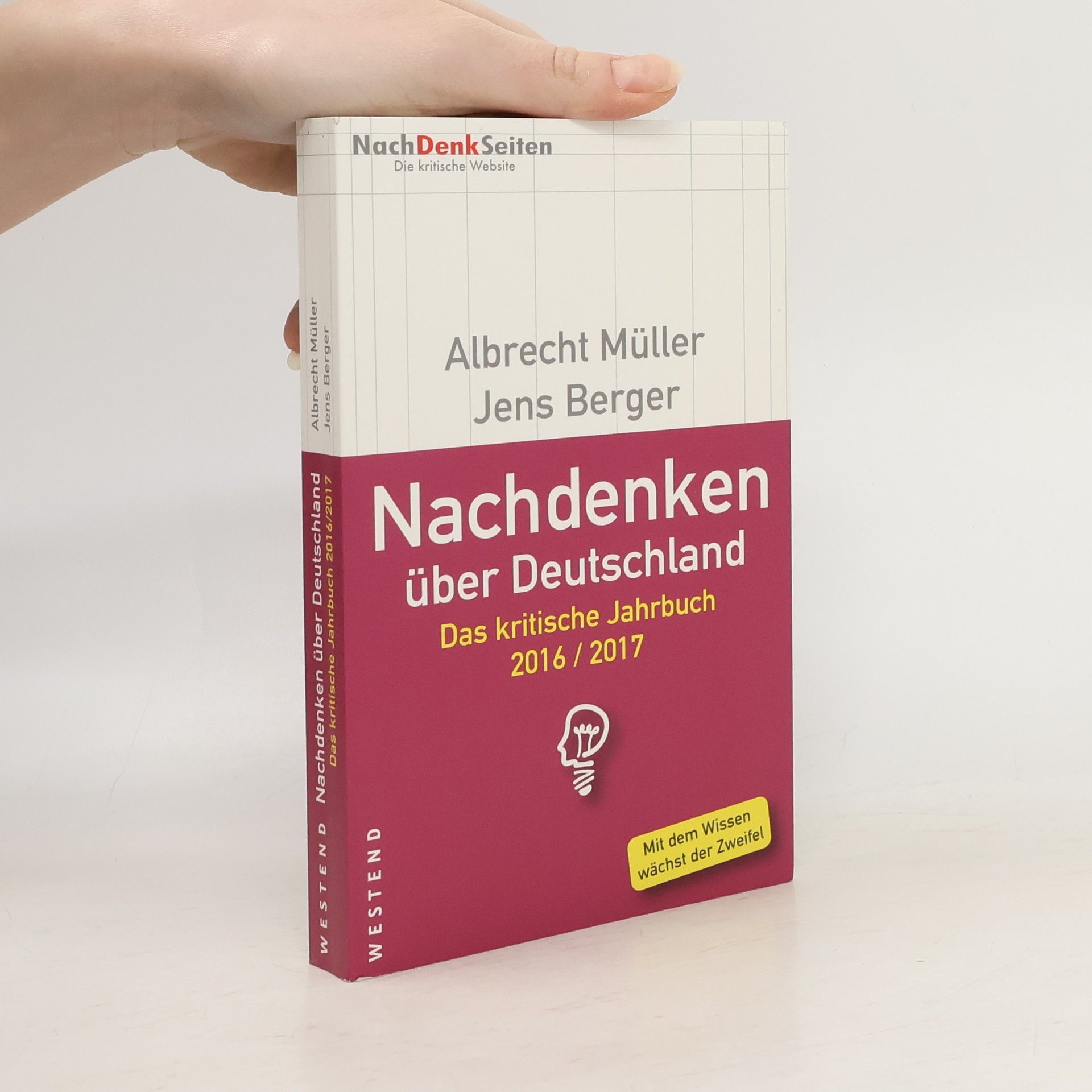 Mit dem Wissen wächst der Zweifel Das Jahrbuch der NachDenkSeiten fasst die wichtigsten politischen Themen des Jahres 2016 zusammen mit Nachrichten, Analysen und Hintergrundinformationen, die im Medienmainstream sonst nicht zu hören oder zu sehen sind. Das Jahrbuch soll anregen zum Nachdenken mit dem Ziel, dass immer mehr Bürgerinnen und Bürger immer weniger bereit sind, sich von skrupelloser Manipulation und willfähriger Meinungsmache bevormunden zu lassen.