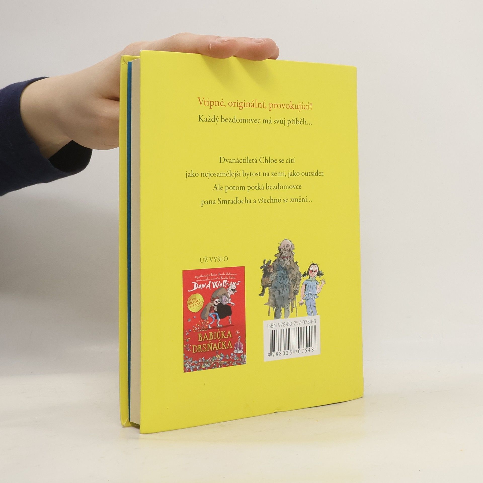 Další humorný příběh pro mladé čtenáře od autora knihy Babička drsňačka. Kouzelně neuctivý a zároveň dojemný příběh vypráví o tajemstvích, přátelství i docela obyčejném životě. Pan Smraďoch patří do kategorie hodně divných románových hrdinů. Žije na lavičce v parku a svému jménu dělá opravdu čest. Je to ten nejsmradlavější smraďoch pod sluncem. Dvanáctileté Chloe to ale rozhodně nebrání v tom, aby se s ním spřátelila. Jasně, páchne, ale na druhou stranu nikdy na ni nikdo nebyl tak milý jako on. A tak se Chloe rozhodne, že milého bezdomovce tajně ubytuje v kůlně na zahradě svých rodičů. Jenže schovejte takového smraďocha! Chloe brzy pozná, že některá tajemství můžou být velmi nebezpečná a od katastrofy je dělí jen malinký krůček.