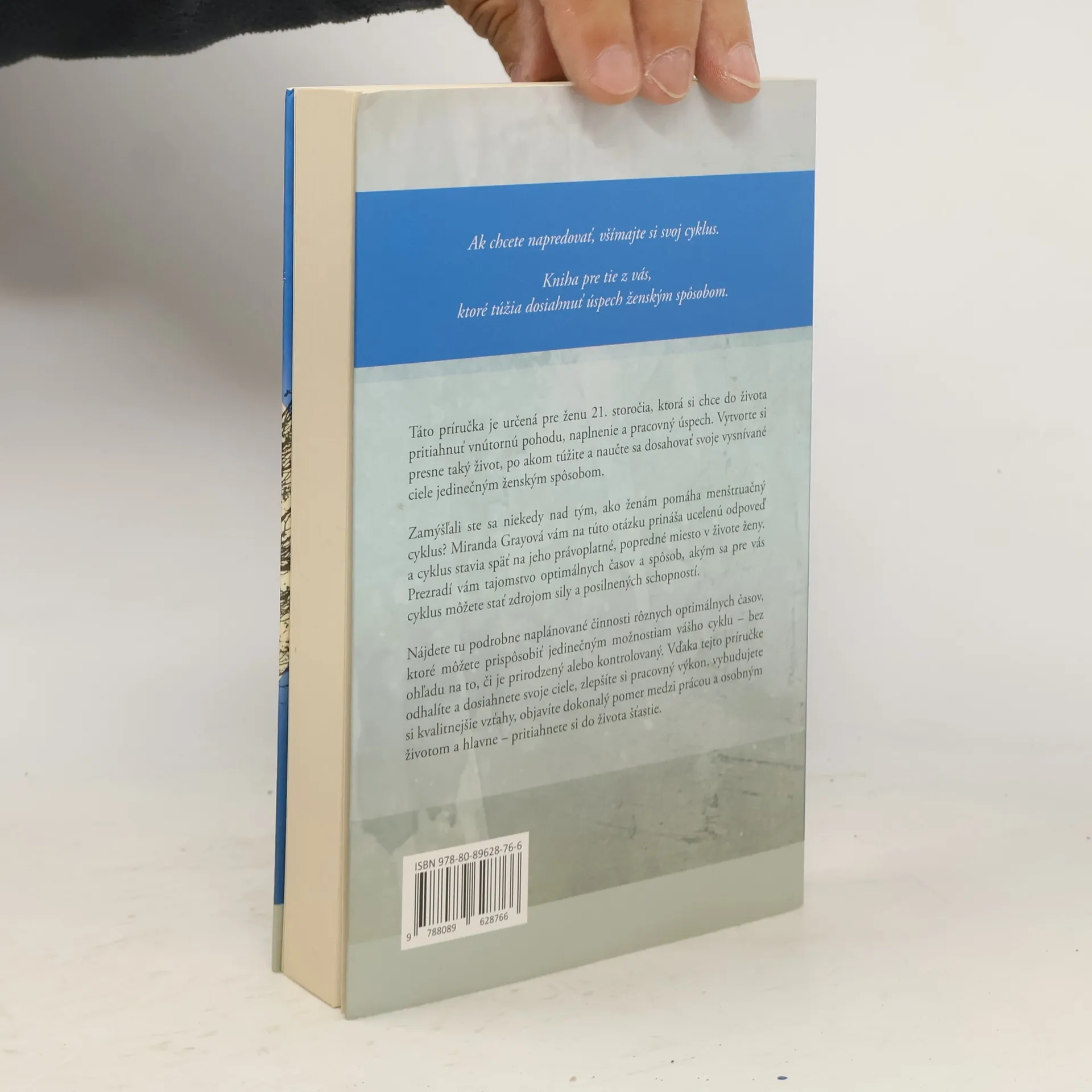 Táto príručka je určená pre ženu 21. storočia, ktorá si chce do života pritiahnuť vnútornú pohodu, naplnenie a pracovný úspech. Vytvorte si presne taký život, po akom túžite a naučte sa dosahovať svoje vysnívané ciele jedinečným ženským spôsobom. Zamýšľali ste sa niekedy nad tým,ako ženám pomáha menštruačný cyklus? Miranda Grayová vám na túto otázku prináša ucelenú odpoveď a cyklus stavia späť na jeho právoplatné, popredné miesto v živote ženy. Prezradí vám tajomstvo optimálnych časov a spôsob, akým sa pre vás cyklus môžete stať zdrojom sily a posilnených schopností. Nájdete tu podrobne naplánované činnosti rôznych optimálnych časov, ktoré môžete prispôsobiť jedinečným možnostiam vášho cyklu – bez ohľadu na to, či je prirodzený alebo kontrolovaný. Vďaka tejto príručke odhalíte a dosiahnete svoje ciele, zlepšíte si pracovný výkon, vybudujete si kvalitnejšie vzťahy, objavíte dokonalý pomer medzi prácou a osobným životom a hlavne – pritiahnete si do života šťastie.
