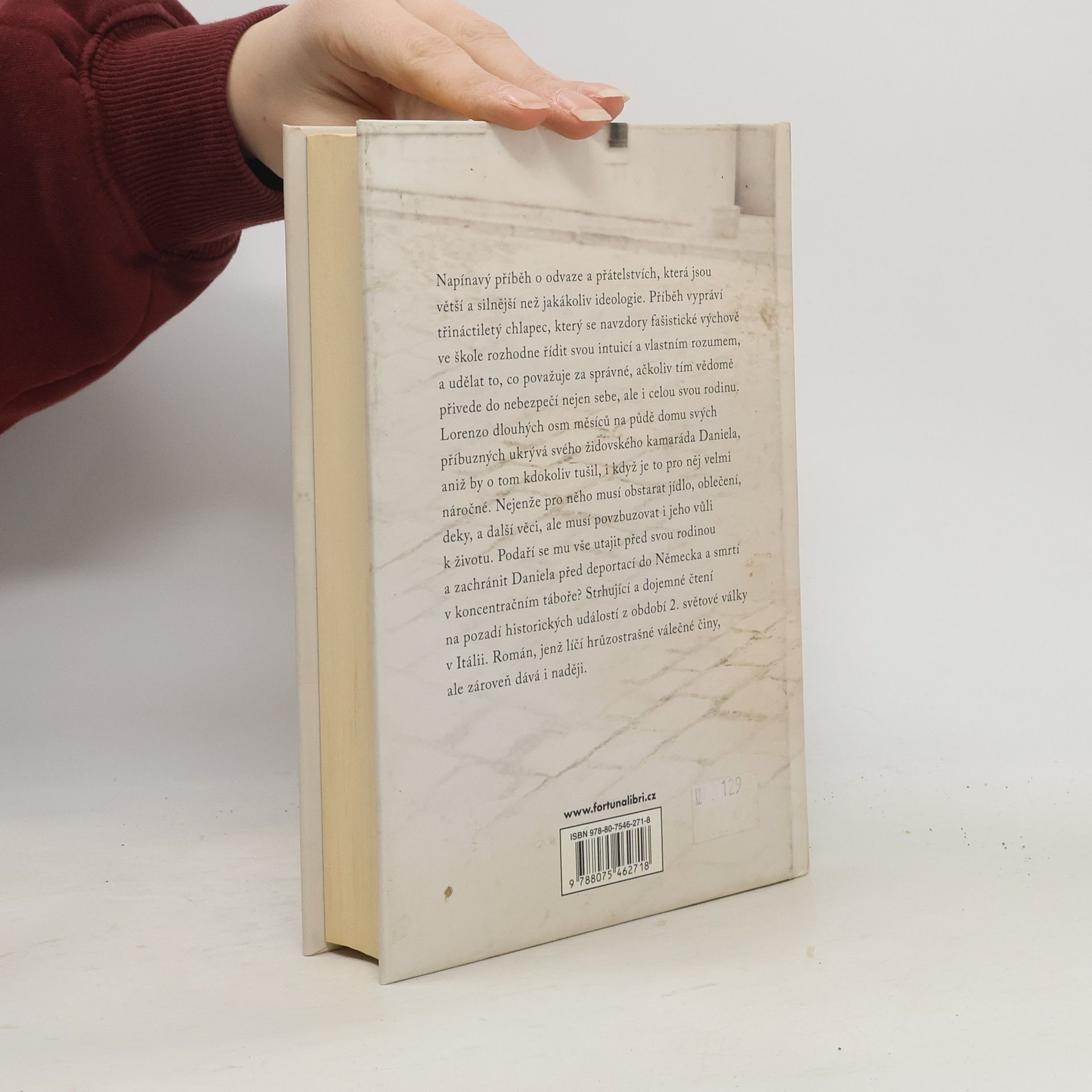 Napínavý příběh o odvaze a přátelstvích, která jsou větší a silnější než jakákoliv ideologie. Příběh vypráví třináctiletý chlapec, který se navzdory fašistické výchově ve škole rozhodne řídit svou intuicí a vlastním rozumem, a udělat to, co považuje za správné, ačkoliv tím vědomě přivede do nebezpečí nejen sebe, ale i celou svou rodinu. Lorenzo dlouhých osm měsíců na půdě domu svých příbuzných ukrývá svého židovského kamaráda Daniela, aniž by o tom kdokoliv tušil, i když je to pro něj velmi náročné. Nejenže pro něho musí obstarat jídlo, oblečení, deky, a další věci, ale musí povzbuzovat i jeho vůli k životu. Podaří se mu vše utajit před svou rodinou a zachránit Daniela před deportací do Německa a smrtí v koncentračním táboře? Strhující a dojemné čtení na pozadí historických událostí z období 2. světové války v Itálii. Román, jenž líčí hrůzostrašné válečné činy, ale zároveň dává i naději.