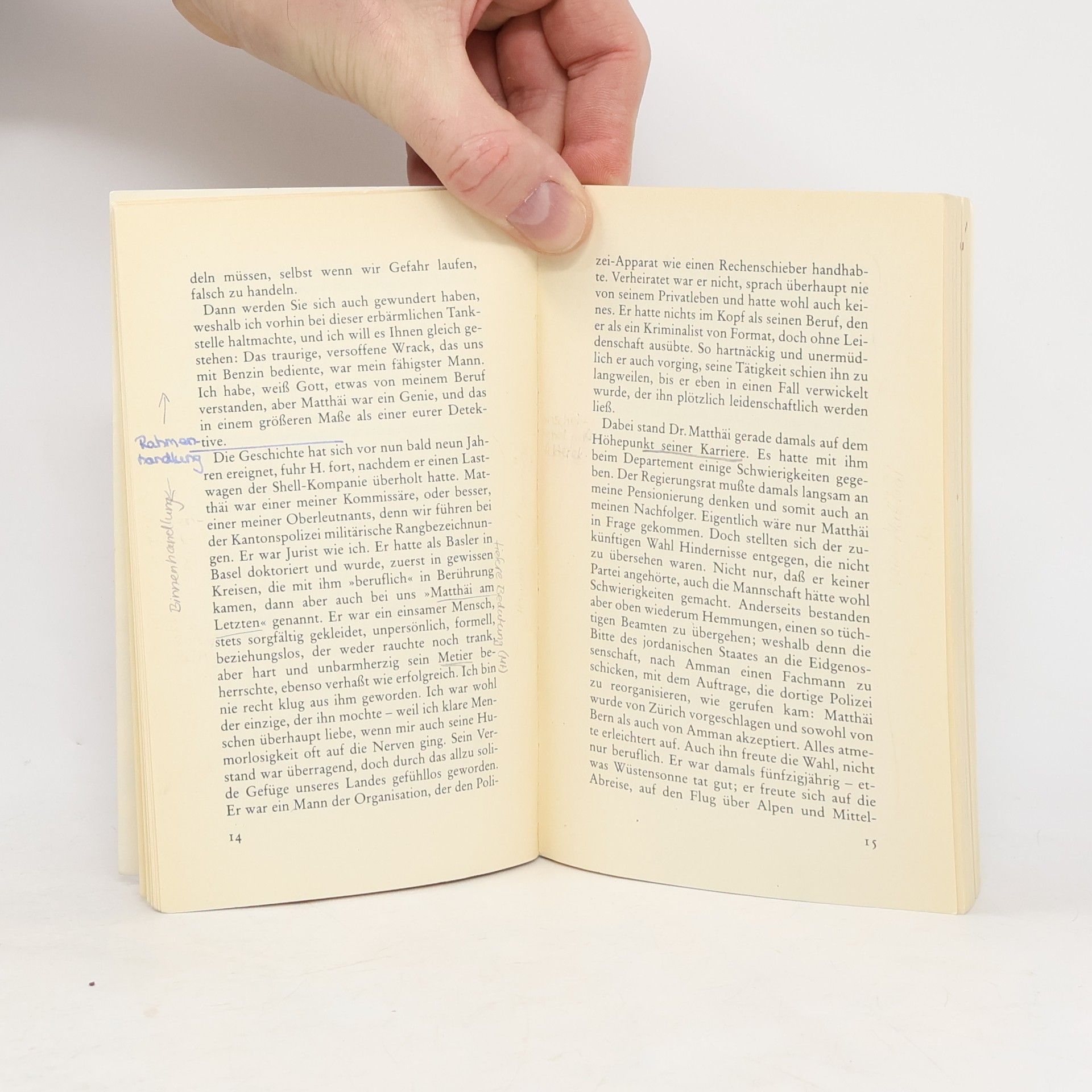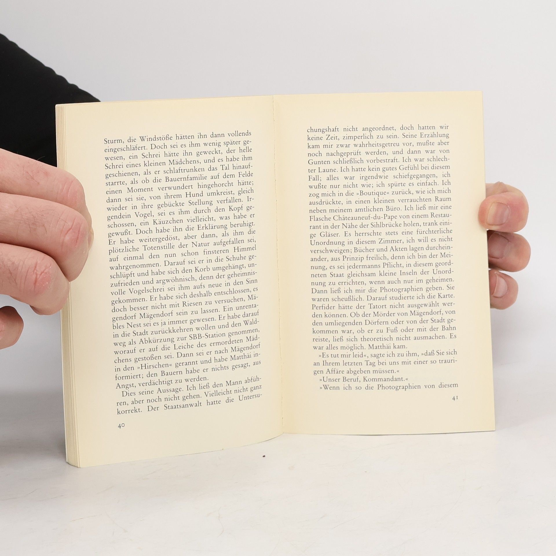Es geschah am hellichten Tag ... Eigentlich sollte sich Kommissar Matthai, der auf der Höhe seiner Karriere angelangt ist, zum Flug nach Jordanien fertigmachen, um dort ein ehrenvolles Amt zu übernehmen. Da erreicht ihn ein Anruf aus Mägendorf, einem kleinen Ort bei Zürich. Ein ihm unbekannter Hausierer teilt ihm mit, er habe im Wald die Leiche eines grausam verstümmelten Mädchens gefunden. Obwohl Matthais Abflug kurz bevor steht, fährt er nach Mägendorf und verspricht den Eltern des Kindes nicht zu rasten, bis er den Täter entlarvt hat.