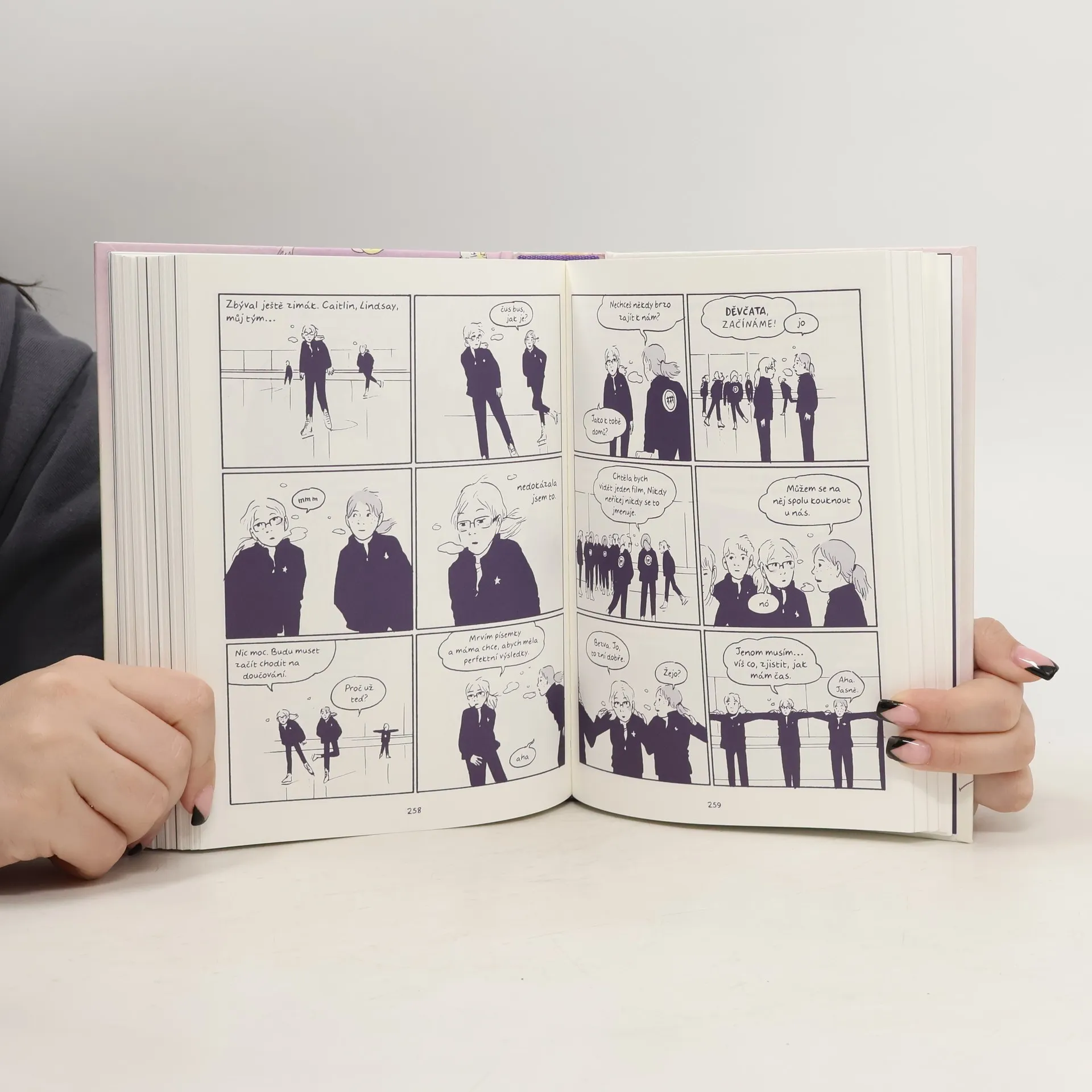 Byla dobrá, vyhrávala a nesnášela to. Každé ráno bylo stejné. Vstát z postele, vzít brusle a vyrazit na kluziště, zatímco okolní svět spal. Soutěžní víkendy plné pozlátka. Výkon, úsměv a to celé pořád dokola. Deset let pro ni bylo krasobruslení vším. Bylo součástí její osobnosti a představovalo bezpečný úkryt před stresem ze školy, před šikanou nebo před problémy doma. Ale když nastoupila do nové školy, objevila svět umění a zamilovala se, začala vše zpochybňovat… V deseti kapitolách pojmenovaných po krasobruslařských prvcích se Tillie Waldenová vrací ke dřině, kterou krasobruslení a s ním spojený životní styl představovalo. Nepřikrášlený a intimní memoár o dospívání, osamělosti a objevování vlastní sexuality zpečetil její novou kariéru ve světě komiksu. Piruety začala kreslit jako náctiletá a ve svých dvaadvaceti letech se díky nim stala jednou z nejmladších držitelek prestižní Ceny Willa Eisnera.
