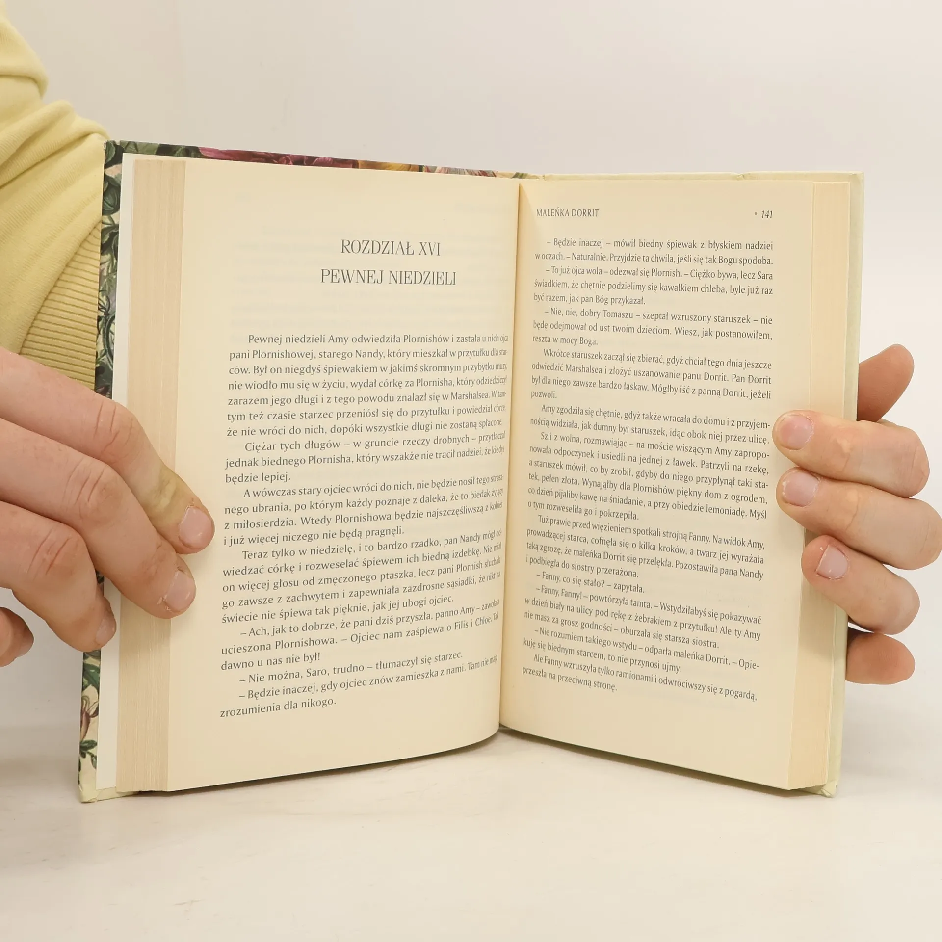 Amy Dorrit, urodzona i wychowana w więzieniu, opiekuje się swoim ojcem osadzonym tam przed laty za długi.Nie zna innego świata, ale staje się w tym ponurym miejscu dobrą duszą, wspierającą wszystkich, z kt�rymi zetknie ją los. Amy zarabia na życie swojej rodziny, szyjąc u pani Clennam, kt�ra zamieszkuje w ponurym domu tylko w towarzystwie dw�jki służących.Zmianę zwiastuje powr�t ? po dwudziestu latach ? Arthura Clennama, jej jedynego syna, kt�ry spędził połowę życia wraz ze swym ojcem w Chinach. Przed śmiercią rodzic starał się przekazać Arthurowi jakąś dręczącą go tajemnicę, kt�ra w niespodziewany spos�b wydaje się młodemu człowiekowi powiązana z osobą szwaczki.