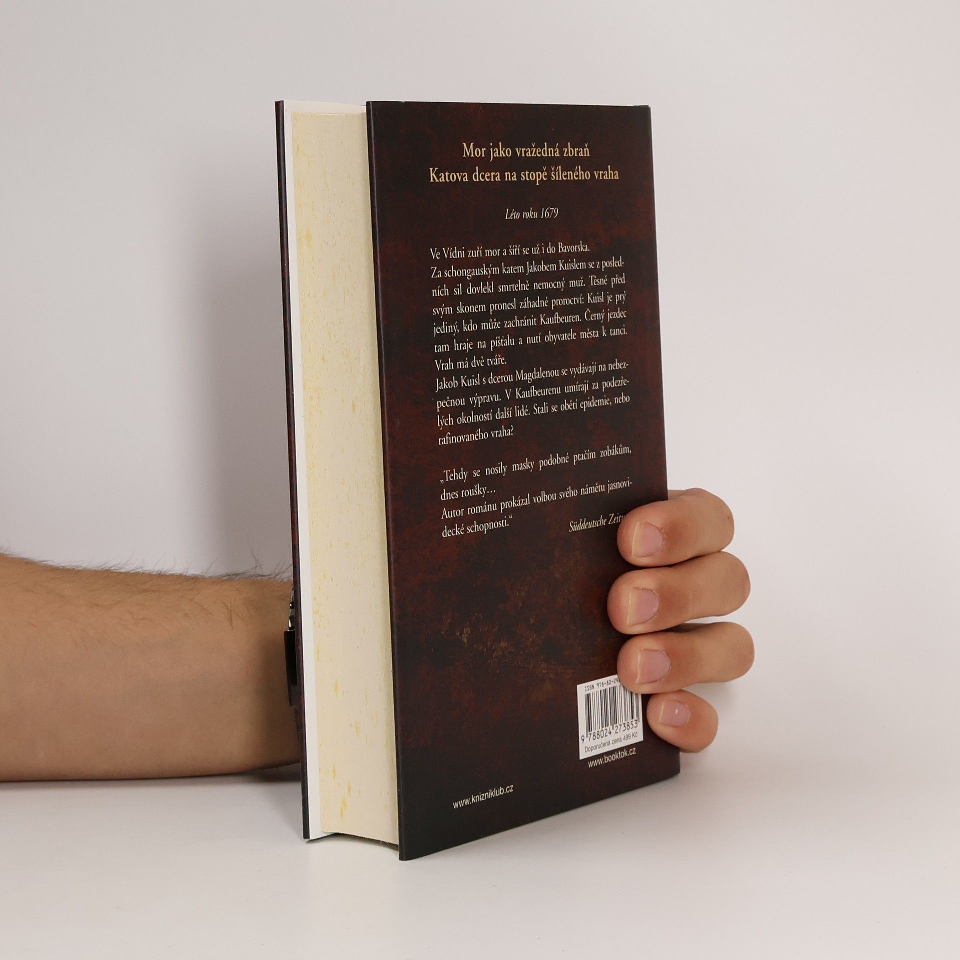Léto roku 1679. Ve Vídni zuří mor a šíří se už i do Bavorska. Za schongauským katem Jakobem Kuislem se z posledních sil dovlekl smrtelně nemocný muž. Těsně před svým skonem pronesl záhadné proroctví: Kuisl je prý jediný, kdo může zachránit Kaufbeuren. Černý jezdec tam hraje na píšťalu a nutí obyvatele města k tanci. Vrah má dvě tváře. Jakob Kuisl s dcerou Magdalenou se vydávají na nebezpečnou výpravu. V Kaufbeurenu umírají za podezřelých okolností další lidé. Stali se obětí epidemie, nebo rafinovaného vraha?