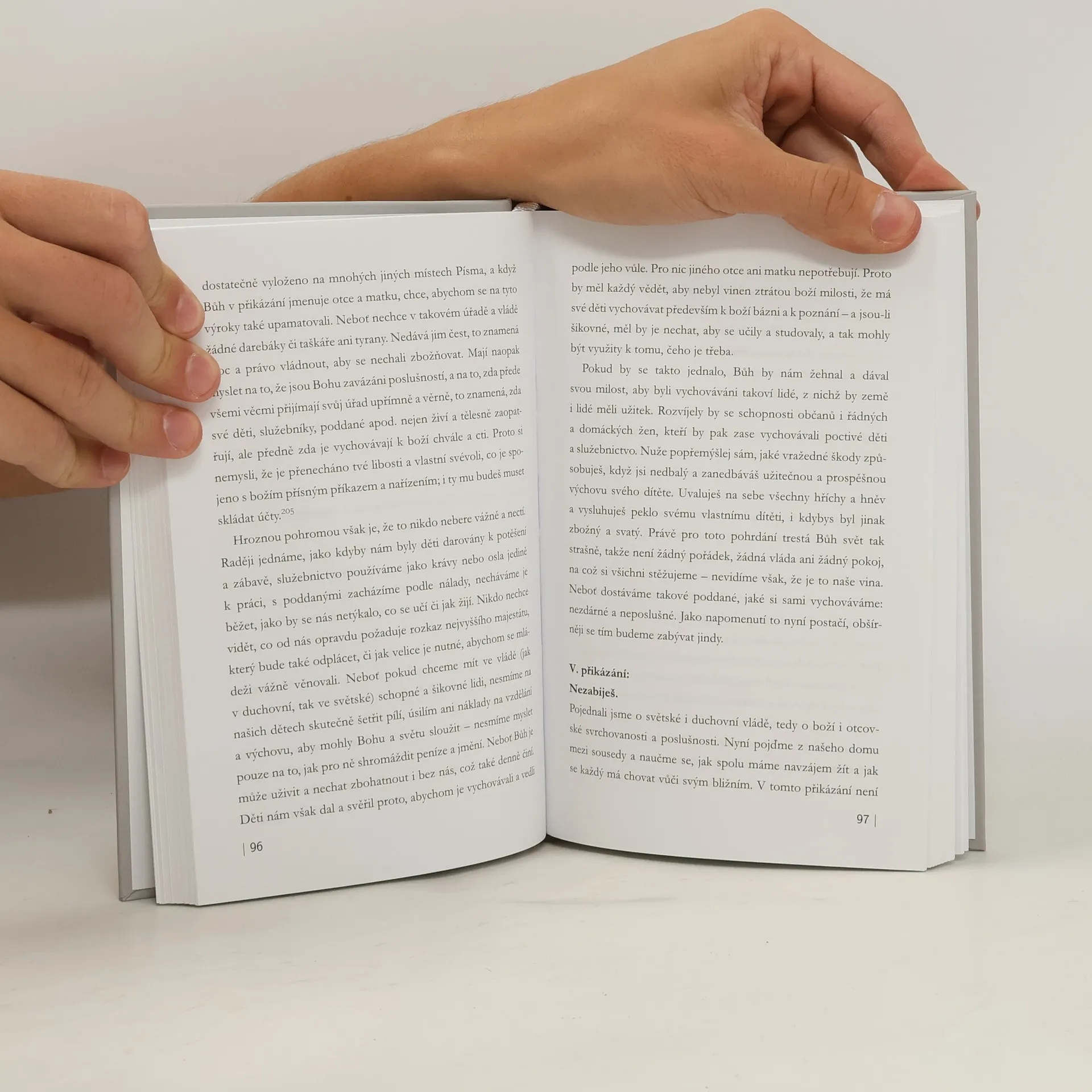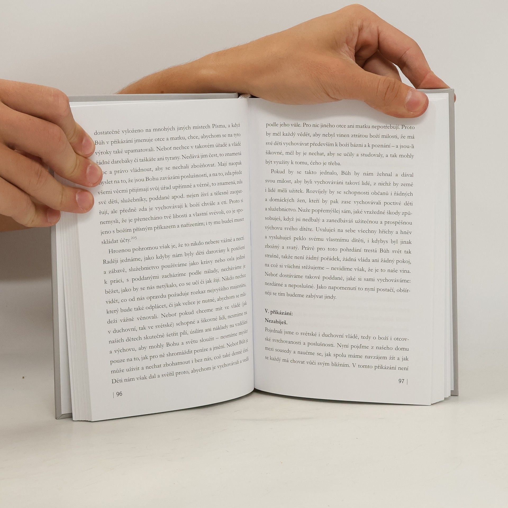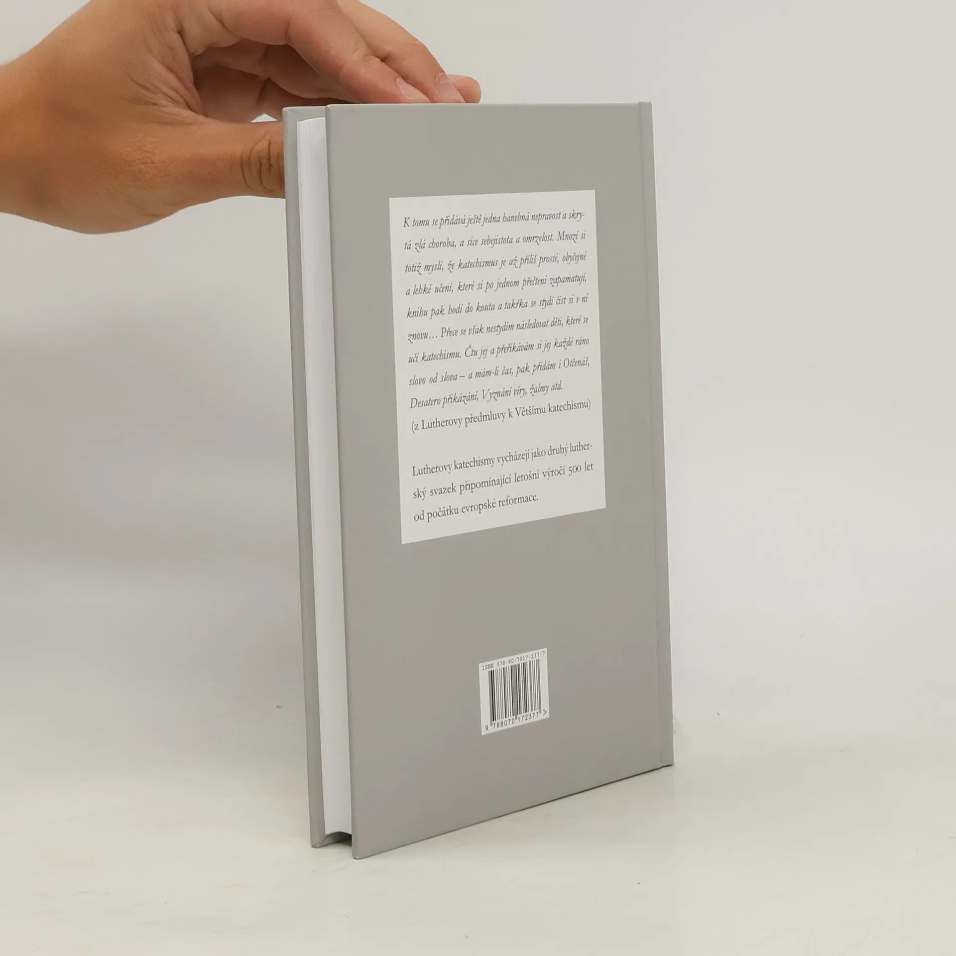 Základní Lutherovy katechetické texty. Vychází jako druhý lutherský svazek připomínající letošní výročí 500 let od počátku evropské reformace. K tomu se přidává ještě jedna hanebná nepravost a skrytá zlá choroba, a sice sebejistota a omrzelost. Mnozí si totiž myslí, že katechismus je až příliš prosté, obyčejné a lehké učení, které si po jednom přečtení zapamatují, knihu pak hodí do kouta a takřka se stydí číst si v ní znovu… Přece se však nestydím následovat děti, které se učí katechismu. Čtu jej a přeříkávám si jej každé ráno slovo od slova – a mám-li čas, pak přidám i Otčenáš, Desatero přikázání, Vyznání víry, žalmy atd. (z Lutherovy předmluvy k Většímu katechismu)
