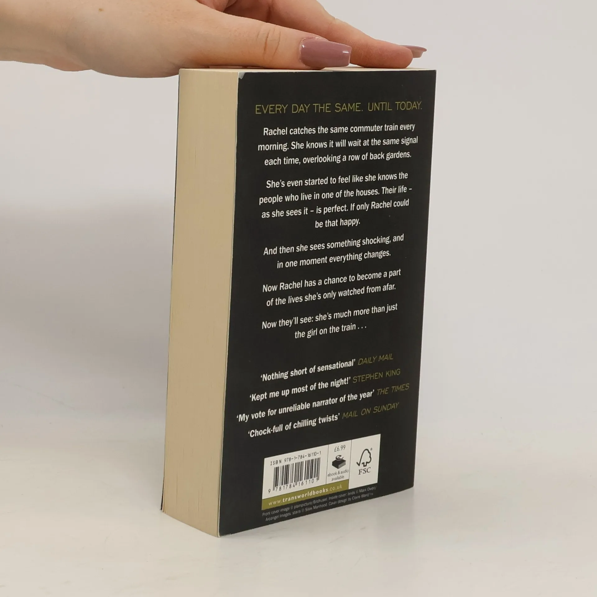THE RUNAWAY SUNDAY TIMES NO.1 BESTSELLER AND THRILLER OF THE YEAR, NOW A MAJOR FILM STARRING EMILY BLUNT 'Really great suspense novel. Kept me up most of the night. The alcoholic narrator is dead perfect' STEPHEN KING Rachel catches the same commuter train every morning. She knows it will wait at the same signal each time, overlooking a row of back gardens. She's even started to feel like she knows the people who live in one of the houses. 'Jess and Jason', she calls them. Their life - as she sees it - is perfect. If only Rachel could be that happy. And then she sees something shocking. It's only a minute until the train moves on, but it's enough. Now everything's changed. Now Rachel has a chance to become a part of the lives she's only watched from afar. Now they'll see; she's much more than just the girl on the train...