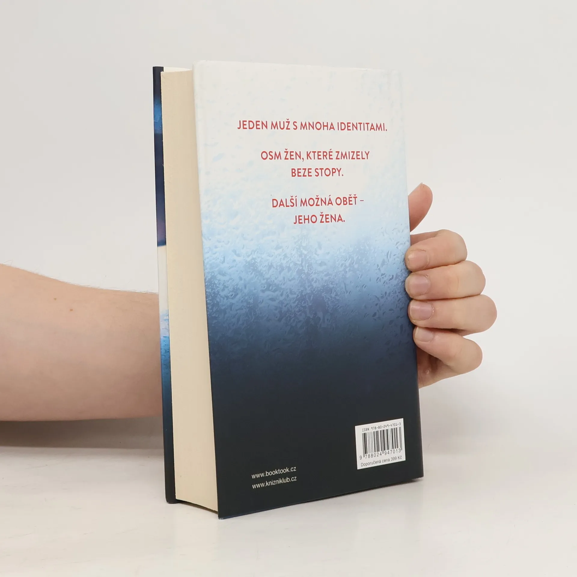 Jeden muž s mnoha identitami. Osm žen, které zmizely beze stopy. Další možná obět...jeho žena. Agent FBI Drex Easton je neúnavně hnán jediným cílem: dostat podvodníka dříve známého jako Weston Graham. Za posledních třicet let vystřídal Weston mnoho jmen a bezpočet převleků, aby vylákal bohatství z osmi zámožných žen, které pak zmizely beze stopy. Jediný společný znak v životě všech obětí je nový muž, který vždy rovněž zmizí a nezanechá žádný důkaz o své existenci. Drex je přesvědčen, že všechny tyto ženy zabil sociopat Weston Graham. Ale pokaždé, když se Drex přiblíží k tomu, aby ho chytil, Weston změní identitu a znovu mu unikne. Teď poprvé v dlouhé hře na kočku a myš má Drex podezřelého konečně v dohledu. Jasper Ford je atraktivní a okouzlující muž, který se nedávno oženil s úspěšnou podnikatelkou Talií Shaferovou. Drex se jim vloudí do života jako jejich nový soused, aby je mohl z blízka sledovat. Čím je k páru blíž, tím více je přesvědčen, že Jasper je přesně ten chytrý a nemilosrdný predátor, kterého tak dlouho hledá, a zároveň že jeho vlastní přitažlivost k Talii může ohrozit celé vyšetřování. Toto je Drexova poslední šance, jak dostat svého mazaného nepřítele dřív, než bude znovu vraždit a podaří se mu navždy uniknout spravedlnosti. Nejdřív však musí zjistit, zda je Talia bezcitným spolupachatelem...nebo další obětí.