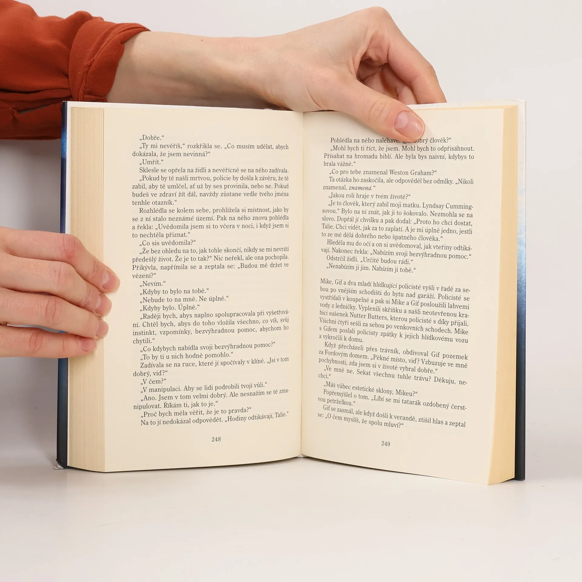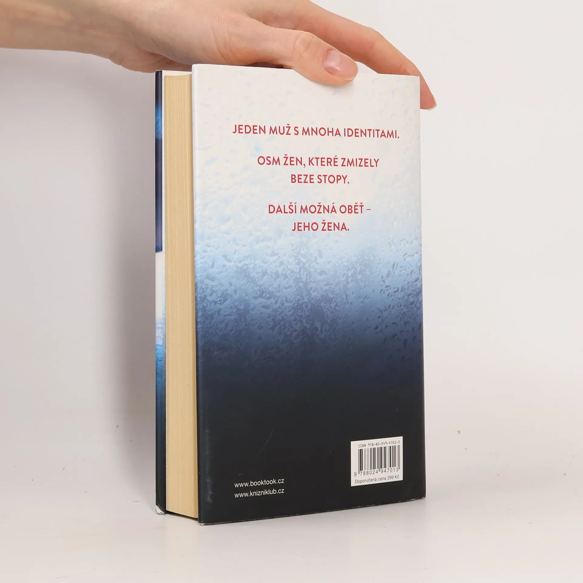 Jeden muž s mnoha identitami. Osm žen, které zmizely beze stopy. Další možná obět...jeho žena. Agent FBI Drex Easton je neúnavně hnán jediným cílem: dostat podvodníka dříve známého jako Weston Graham. Za posledních třicet let vystřídal Weston mnoho jmen a bezpočet převleků, aby vylákal bohatství z osmi zámožných žen, které pak zmizely beze stopy. Jediný společný znak v životě všech obětí je nový muž, který vždy rovněž zmizí a nezanechá žádný důkaz o své existenci. Drex je přesvědčen, že všechny tyto ženy zabil sociopat Weston Graham. Ale pokaždé, když se Drex přiblíží k tomu, aby ho chytil, Weston změní identitu a znovu mu unikne. Teď poprvé v dlouhé hře na kočku a myš má Drex podezřelého konečně v dohledu. Jasper Ford je atraktivní a okouzlující muž, který se nedávno oženil s úspěšnou podnikatelkou Talií Shaferovou. Drex se jim vloudí do života jako jejich nový soused, aby je mohl z blízka sledovat. Čím je k páru blíž, tím více je přesvědčen, že Jasper je přesně ten chytrý a nemilosrdný predátor, kterého tak dlouho hledá, a zároveň že jeho vlastní přitažlivost k Talii může ohrozit celé vyšetřování. Toto je Drexova poslední šance, jak dostat svého mazaného nepřítele dřív, než bude znovu vraždit a podaří se mu navždy uniknout spravedlnosti. Nejdřív však musí zjistit, zda je Talia bezcitným spolupachatelem...nebo další obětí.