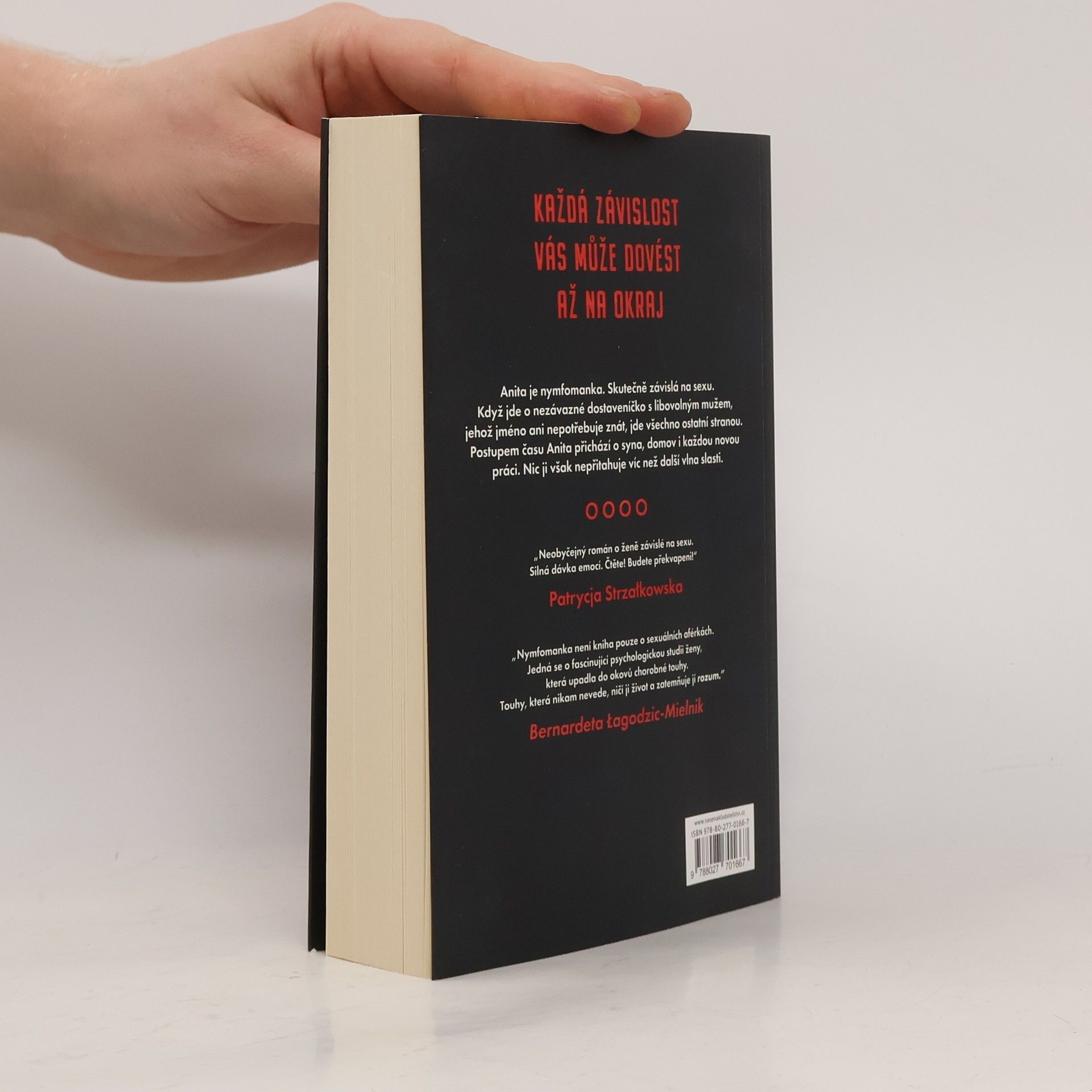 „Skousnu rty a nervózně se rozhlížím. Touha po sexu je tak silná, že sotva dýchám. Jako by se mi něco usadilo na hrudním koši a stále silněji mě dusilo. Jako by se mě zmocnila nějaká můra.“ Anita je závislá na sexu. Benzinové stanice, bary, pánské toalety – každé místo je dobré, aby na něm svedla muže. A ti téměř nikdy neodmítnou. Celá léta žije na hraně. Časem ztrácí všechno: syna, dům i každou další práci. Zoufale touží po něčí blízkosti, nedokáže však u sebe nikoho udržet. Palčivá touha po sexu způsobuje, že všechno ostatní ztrácí svou důležitost. Zoufalá touha po něčí blízkosti a touha po příležitostném sexu jí vzaly všechno. Přesto stále bojuje o důstojnost a lásku.