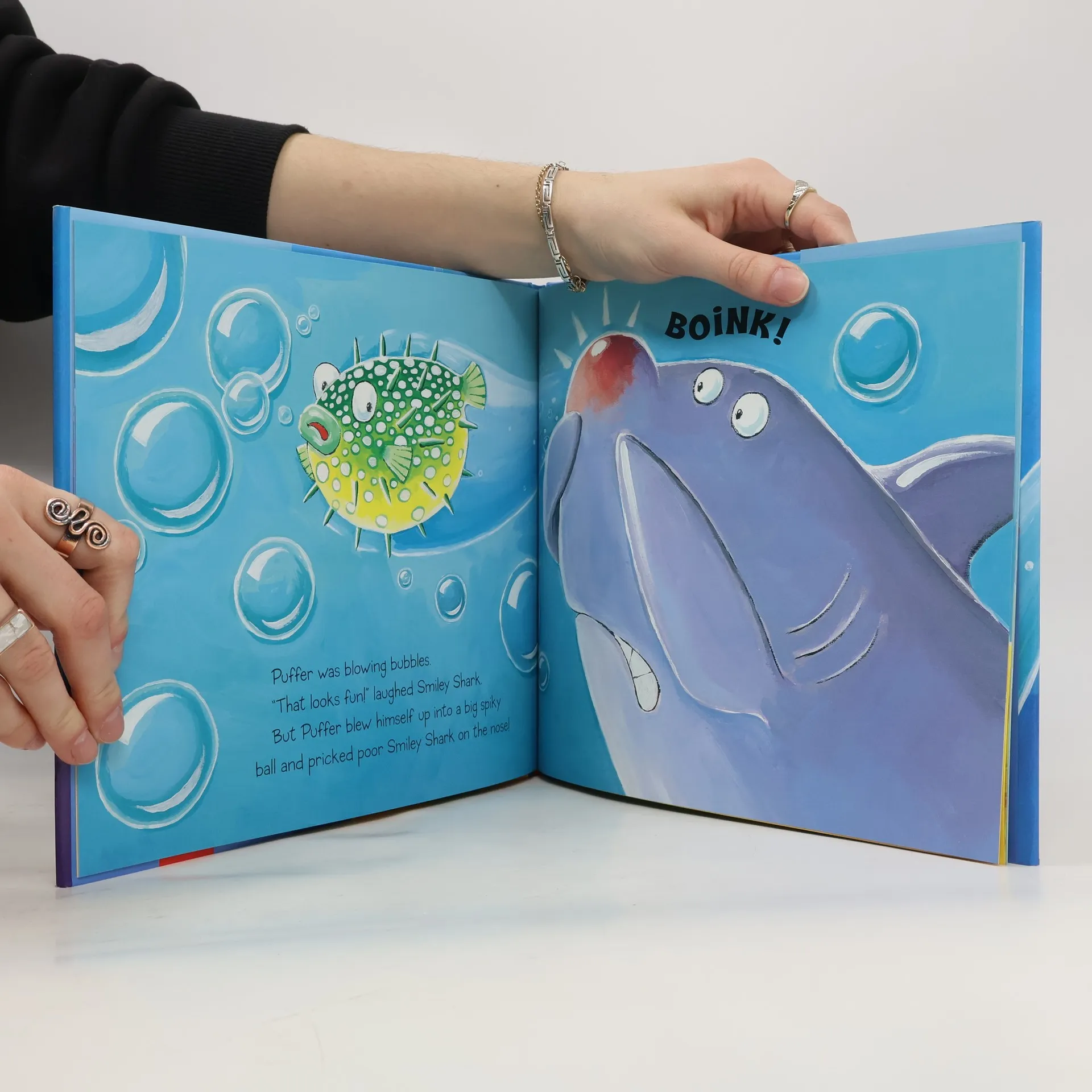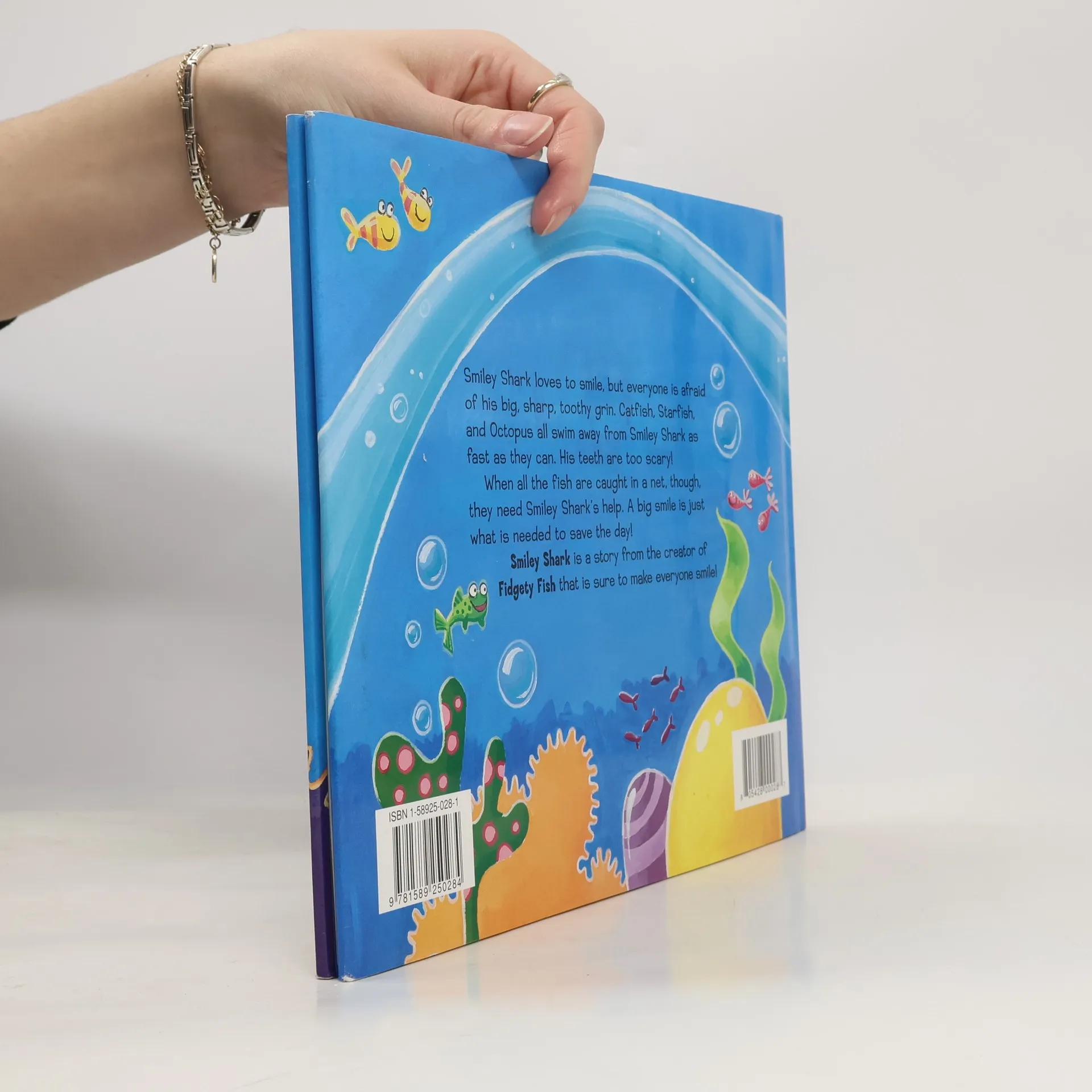 Smiley Shark's toothy smile frightens the other sea animals but comes in handy when they are caught in a net