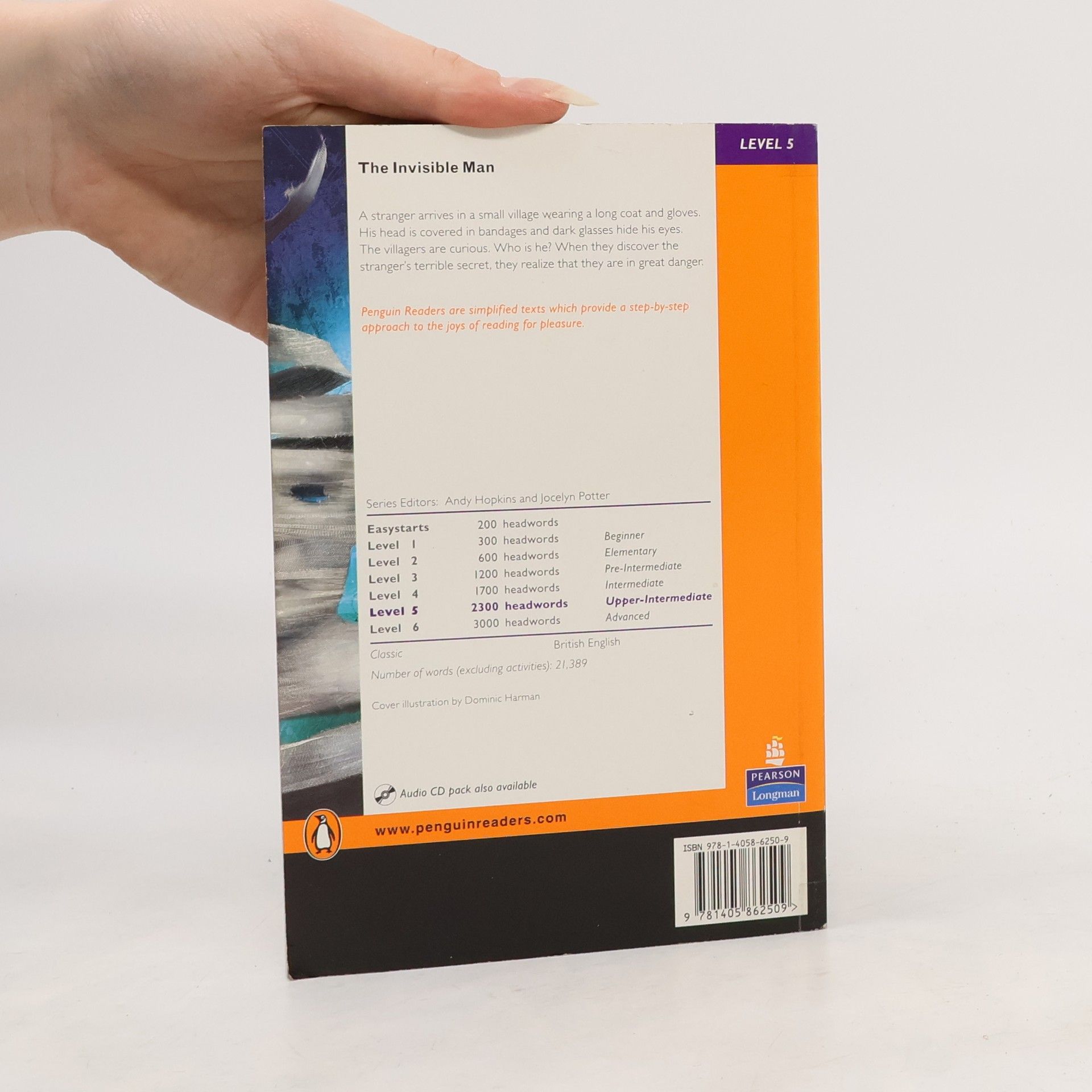 Classic / British English A stranger arrives in a small village wearing a long coat and gloves. His head is covered in bandages and dark glasses hide his eyes. The villagers are curious. Who is he? When they discover the stranger's terrible secret, they realize that they are in great danger.