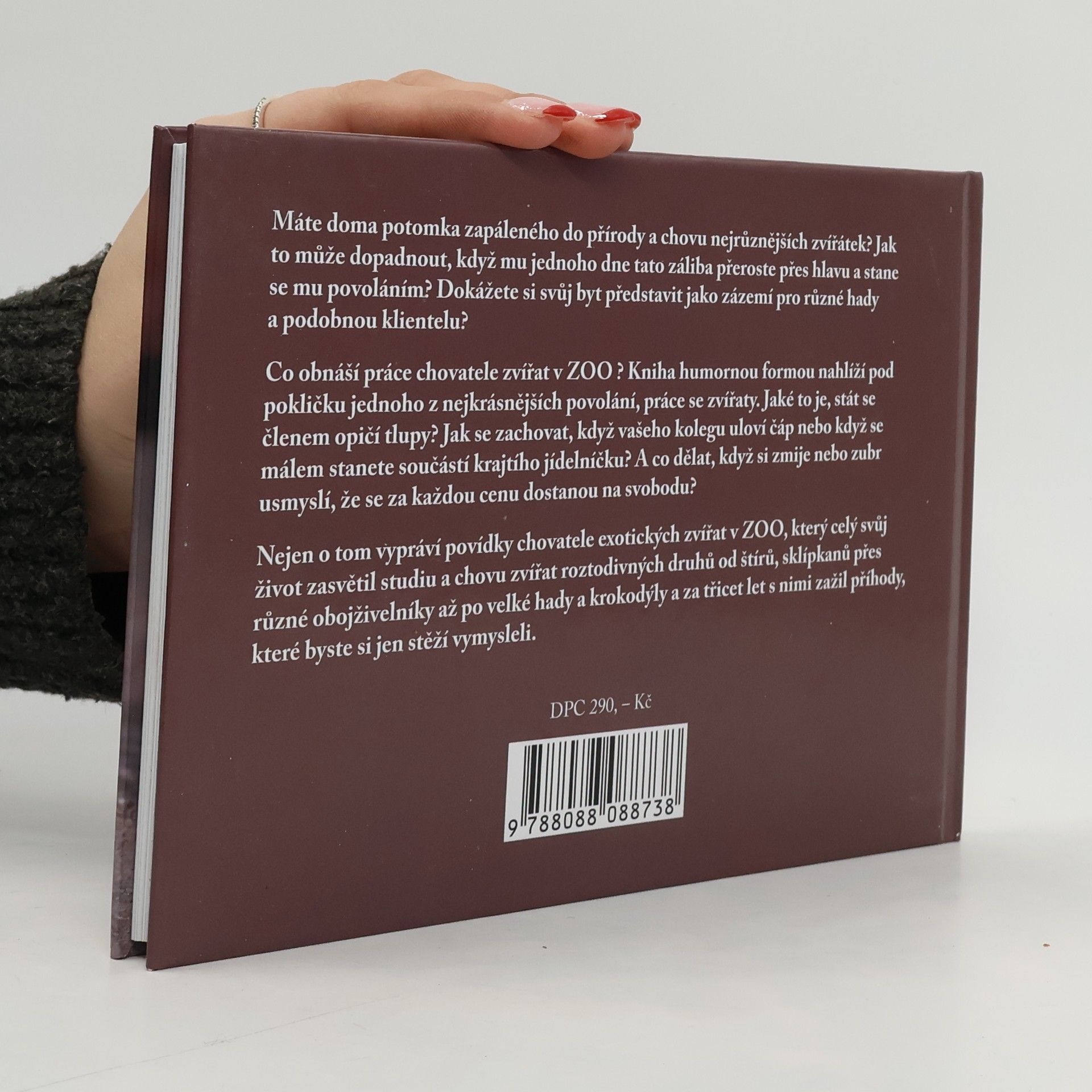 Máte doma potomka zapáleného do přírody a chovu nejrůznějších zvířátek? Jak to může dopadnout, když mu jednoho dne tato záliba přeroste přes hlavu a stane se mu povoláním? Dokážete si svůj byt představit jako zázemí pro různé hady a podobnou klientelu? Co obnáší práce chovatele zvířat v zoo? Kniha humornou formou nahlíží pod pokličku jednoho z nejkrásnějších povolání, práce se zvířaty. Jaké to je, stát se členem opičí tlupy? Jak se zachovat, když vašeho kolegu uloví čáp nebo když se málem stanete součástí krajtího jídelníčku? A co dělat, když si zmije nebo zubr usmyslí, že se za každou cenu dostanou na svobodu? Nejen o tom vypráví povídky chovatele exotických zvířat v ZOO, který celý svůj život zasvětil studiu a chovu zvířat roztodivných druhů od štírů, sklípkanů přes různé obojživelníky až po velké hady a krokodýly a za třicet let s nimi zažil příhody, které byste si jen stěží vymysleli.