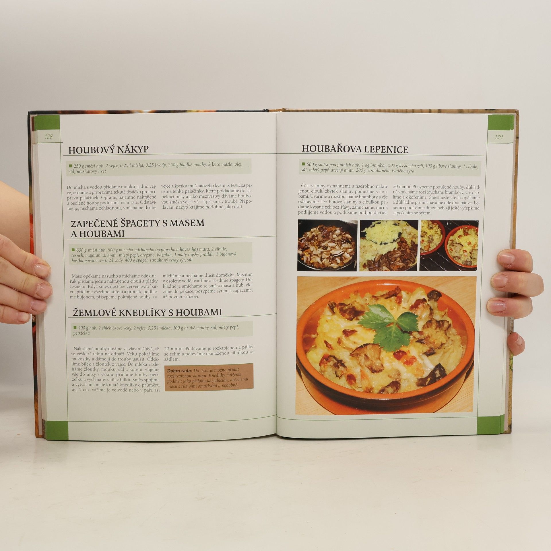 Kniha je rozdělena na dvě části, v první části jsou vyobrazeny jedlé houby, druhá část je kuchařka houbových receptů. Celá kniha doplněna fotografiemi hub a houbových pokrmů