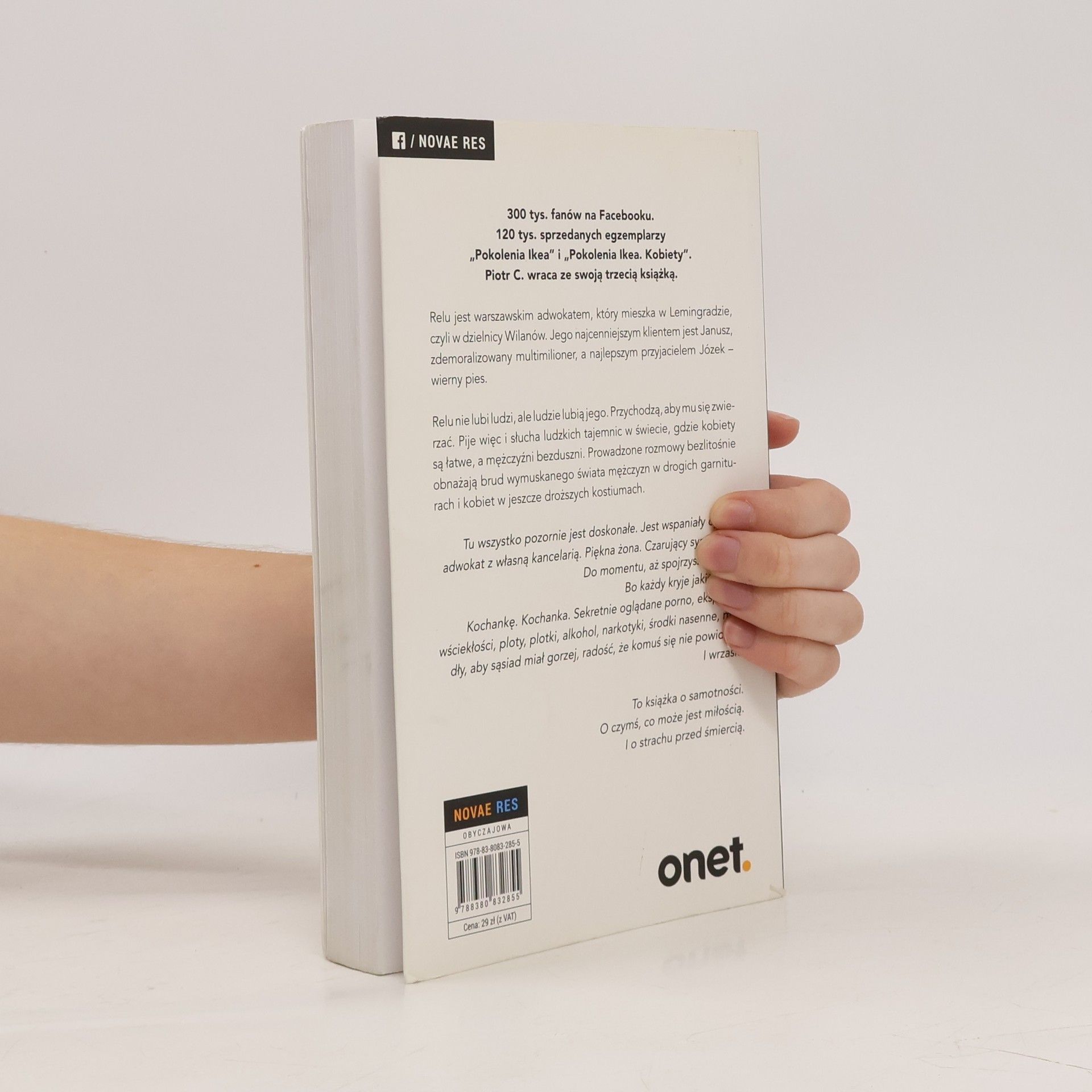 Piotr C. wraca ze swoją trzecią książką. Relu jest warszawskim adwokatem, który mieszka w Lemingradzie, czyli w dzielnicy Wilanów. Jego najcenniejszym klientem jest Janusz, zdemoralizowany multimilioner, a najlepszym przyjacielem Józek – wierny pies. Relu nie lubi ludzi, ale ludzie lubią jego. Przychodzą, aby mu się zwierzać. Pije więc i słucha ludzkich tajemnic w świecie, gdzie kobiety są łatwe, a mężczyźni bezduszni. Prowadzone rozmowy bezlitośnie obnażają brud wymuskanego świata mężczyzn w drogich garniturach i kobiet w jeszcze droższych kostiumach. To książka o samotności. O czymś, co może jest miłością. I o strachu przed śmiercią.