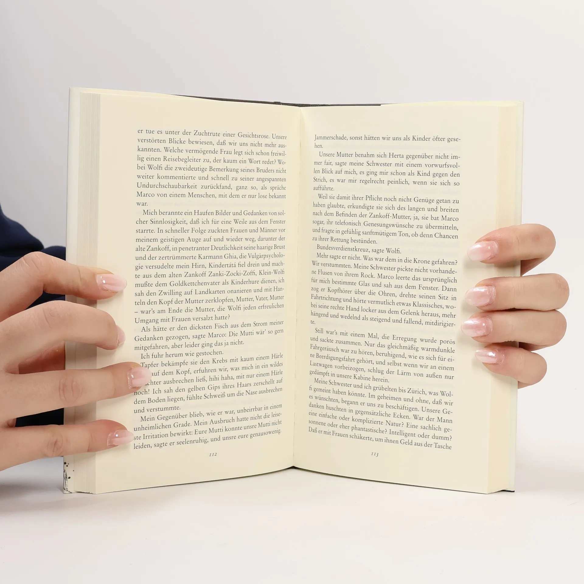 Zwei Schwestern. Die eine auf der Rückbank, die andere auf dem Beifahrersitz, die eine scharfzüngig und kampflustig, die andere nachsichtig und höflich: Sie sind unterwegs im heutigen Bulgarien. Auf der ersten Hälfte ihrer Reise waren sie Teil eines prächtigen Limousinenkonvois, der die Leichen von 19 Exilbulgaren – in den Vierzigern von Sofia nach Stuttgart ausgewandert – in ihre alte Heimat überführte. Darunter der frühverstorbene Vater der Schwestern. Jetzt sind sie Touristinnen, chauffiert vom langmütigen Rumen Apostoloff. Er möchte den beiden die Schätze seines Landes zeigen, die Keramik mit Pfauenaugendekor (dessen Kobaltblau giftig ist), die Schwarzmeerküste (komplett versaut), die Architektur (ein Verbrechen des 20. Jahrhunderts). Die Jüngere, die Erzählerin, spuckt Gift und Galle. Apostoloffs Vermittlungsversuche zwischen Sofia und Stuttgart sind zunächst wenig erfolgreich. Denn das bulgarische Erbe der Schwestern wiegt schwer – wenn der Vater, der erfolgreiche Arzt und schwermütige Einwanderer, in ihren Träumen auftaucht, schlängelt das Ende des Stricks, an dem er sich erhängt hat, noch hinter ihm her. Doch dem »Unglück, das dieses Aas von einem Vater auf Häupter und Herzen seiner Töchter geladen hat« wird nicht auf melancholische Art begegnet. Sibylle Lewitscharoffs neuer Roman ist eine Suada von der Rückbank, die bissige, rabenschwarze und erzkomische Abrechnung einer Tochter mit dem Vater und seinem Land.