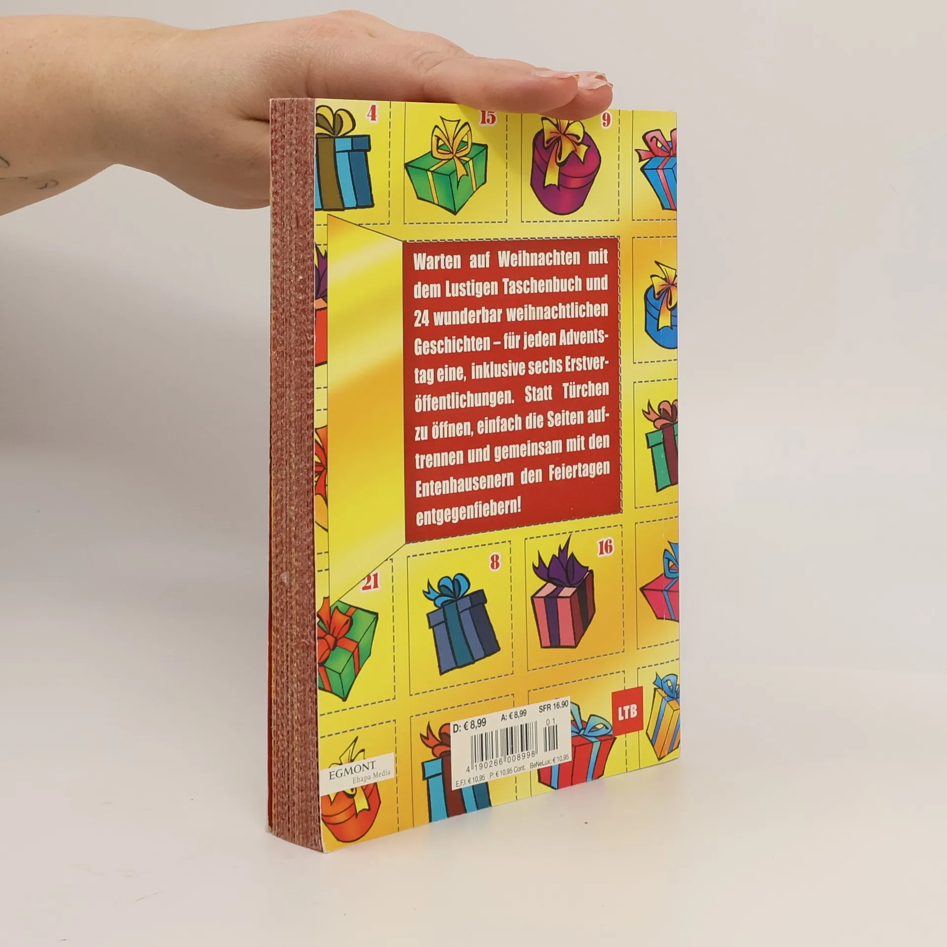 Für jeden Adventstag gibt es eine wunderbar weihnachtliche Geschichte! Mit dem Lustigen Taschenbuch Advent Nr. 1 macht das Warten auf Weihnachten Spaß! Insgesamt gibt es 24 tolle Geschichten, inklusive sechs Erstveröffentlichungen. Anstatt Türchen zu öffnen, einfach die Seiten auftrennen und mit den Entenhausenern den Feiertagen entgegenfiebern! Dieser Titel wird im sog. Fixed-Layout-Format angeboten und ist daher nur auf Geräten und Leseprogrammen nutzbar, die die Darstellung von Fixed-Layout-eBooks im epub- oder mobi/KF8-Format unterstützen. Wir empfehlen in jedem Fall die Darstellung auf Tablets und anderen Geräten mit Farbbildschirm