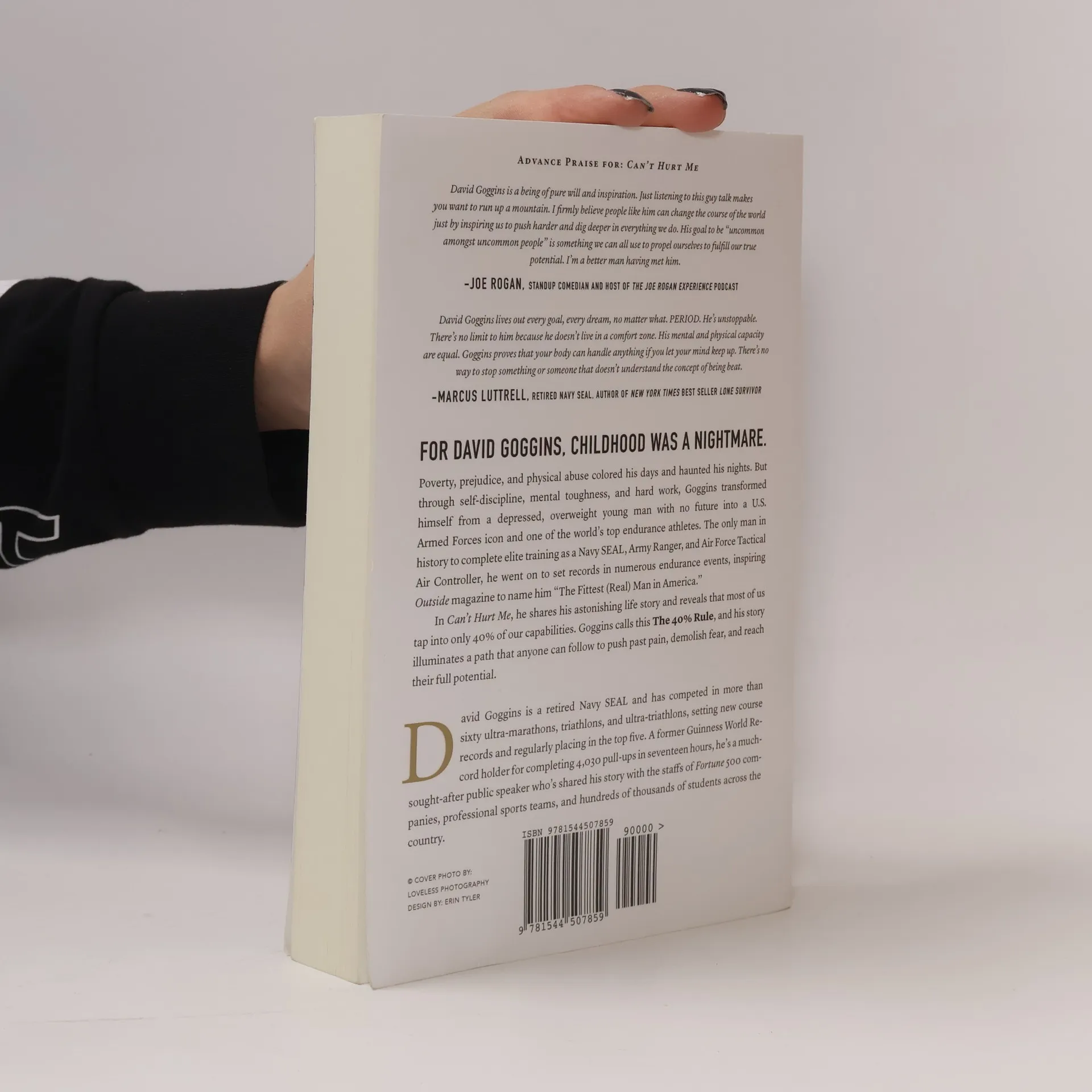 For David Goggins, childhood was a nightmare - poverty, prejudice, and physical abuse colored his days and haunted his nights. But through self-discipline, mental toughness, and hard work, Goggins transformed himself from a depressed, overweight young man with no future into a U.S. Armed Forces icon and one of the world's top endurance athletes. The only man in history to complete elite training as a Navy SEAL, Army Ranger, and Air Force Tactical Air Controller, he went on to set records in numerous endurance events, inspiring Outside magazine to name him The Fittest (Real) Man in America. In this curse-word-free edition of Can't Hurt Me, he shares his astonishing life story and reveals that most of us tap into only 40% of our capabilities. Goggins calls this The 40% Rule, and his story illuminates a path that anyone can follow to push past pain, demolish fear, and reach their full potential.