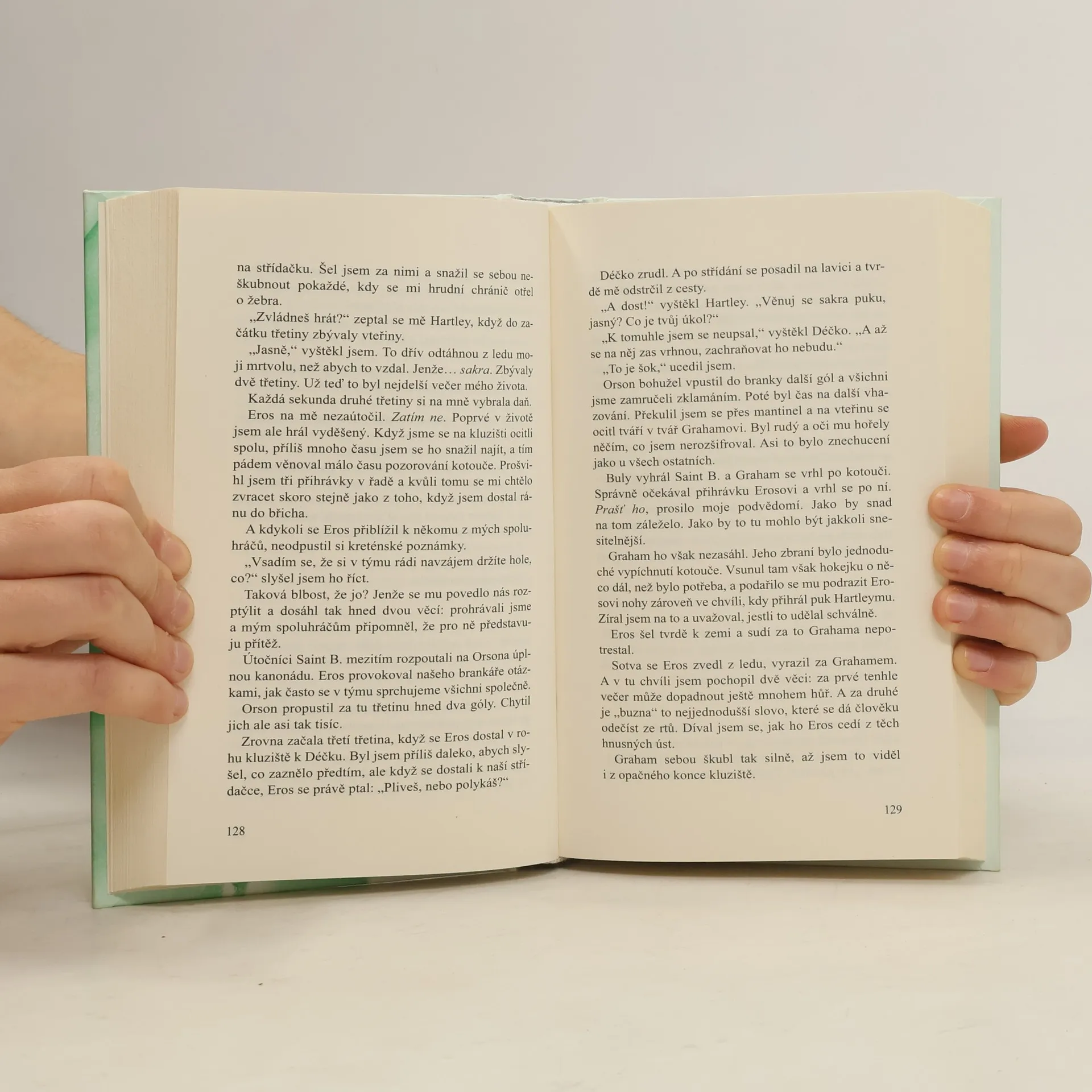 Co se stalo na střední, zůstalo na střední. Až doteď. Před pěti lety Michael Graham zradil jediného člověka, který ho doopravdy znal. Od té doby svoji sexualitu tají před všemi, i před sebou. Nemůže uvěřit vlastním očím, když do šatny hokejového týmu Harknesské univerzity vstoupí duch jeho minulosti, s taškou s hokejovou výstrojí na rameni a s tím samým úsměvem, kterému Graham kdysi nedokázal odolat. V tu chvíli je jedinou reakcí, na kterou se Graham zmůže, čirá panika. Jediné omylem pronesené slovo a nový člen týmu by mohl Grahamovi zničit celý život. John Rikker je zase nováčkem. Tentokrát je to horší než obvykle, protože se mu na paty lepí novináři, kteří se nemůžou dočkat, až napíšou další článek o jediném hráči v první divizi, který o sobě otevřeně prozradil, že je gay. Jeho spoluhráči nejsou z přítomnosti tolika novinářů nadšení, a zvlášť jeden hráč zbledne pokaždé, kdy Rikker vejde do místnosti. Rikker rozhodně nečekal, že by ho Graham přivítal s otevřenou náručí, ale to, že se mu ani nepodívá do očí, ho také překvapilo. Jak to tak vypadá, jeho bývalému… nejlepšímu kamarádovi, nebo příteli, nebo co to vlastně byli, se moc nedaří. Příliš pije a během tréninku se nedokáže soustředit. Buď dva nejosamělejší členy týmu tlak, který je na ně vyvíjen, dočista zničí, nebo překonají bolest, kterou si způsobili, a vrátí se k sobě.