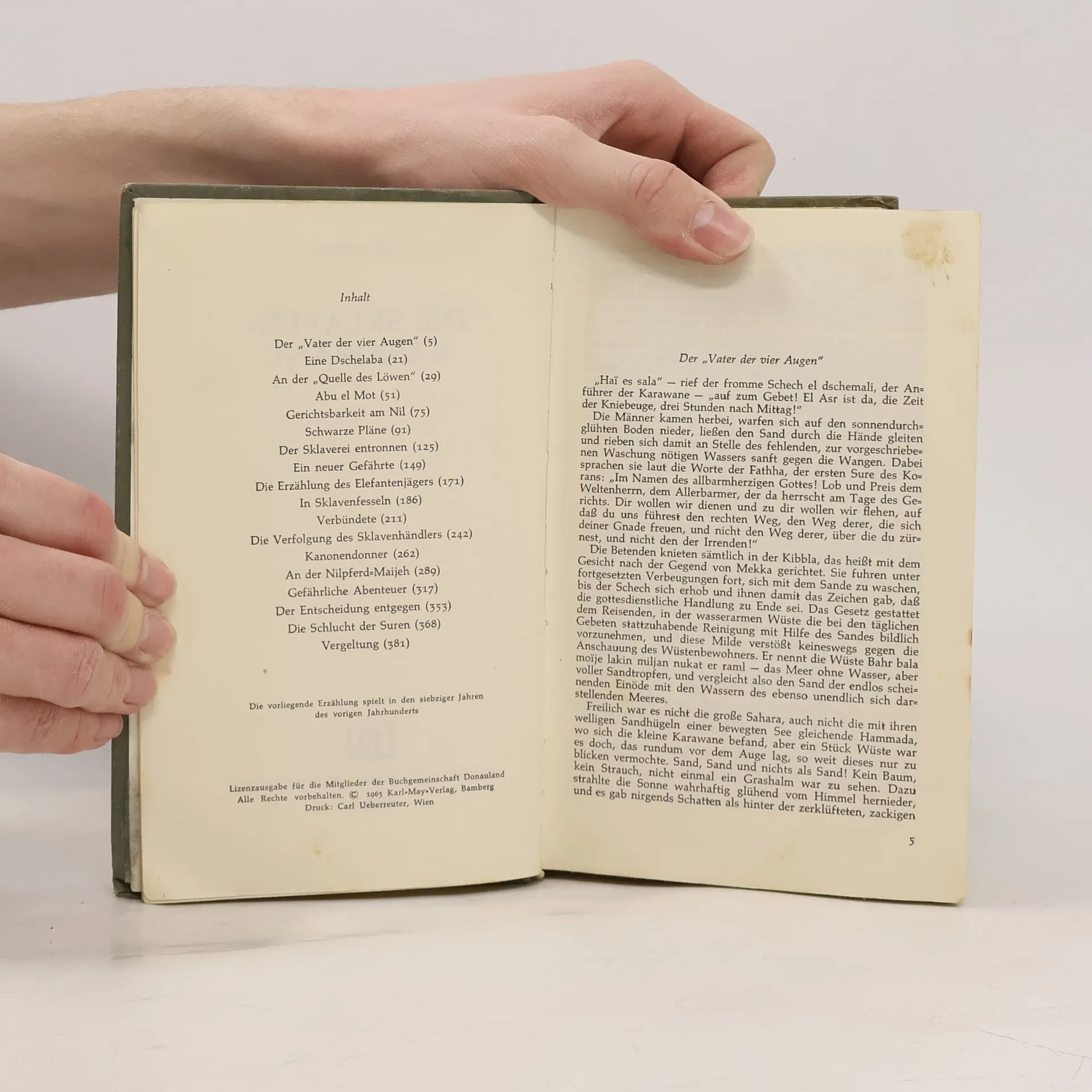 Die Brüder Emil und Josef Schwarz, zwei deutsche Forschungsreisende, begegnen im Sudan nicht nur dem berüchtigten Sklavenjäger Abu el Mot, sondern entkommen durch Mut, List und Zusammenhalt auch so mancher gefahrvollen Situation. So überlebt Emil einen Anschlag der Araber vom Stamm der Homr, die auf Abu el Mots Anweisung handeln, und erfährt schließlich, dass sich dieser in Seribah Omm et Timsah, südlich von Faschoda, niedergelassen hat. Auch Josef Schwarz passiert den Ort per Schiff auf dem Nil und fällt schließlich dem Sklavenjäger in die Hände, der das Dorf Ombula überfallen und dessen Bewohner versklaven will. Kann es Emil gelingen, seinen Bruder zu befreien und gemeinsam mit diesem und den zahlreichen Verbündeten der Sklaverei ein Ende zu setzen? Der spannungsvoll konstruierte Text wird durch ein erläuterndes Glossar ergänzt und macht den Roman damit auch einem jugendlichen Lesepublikum zugänglich.