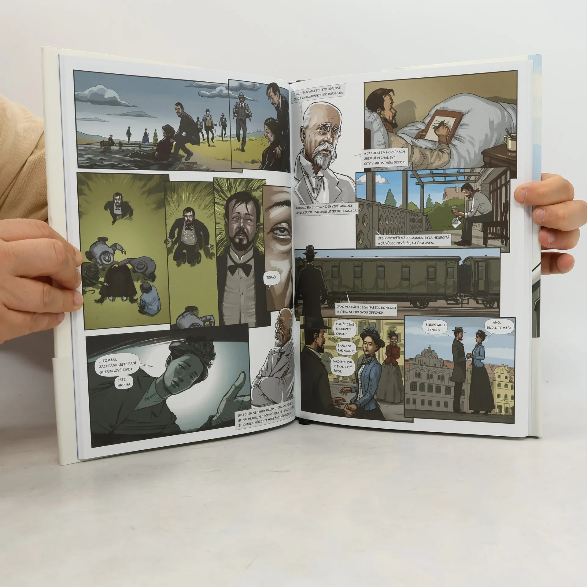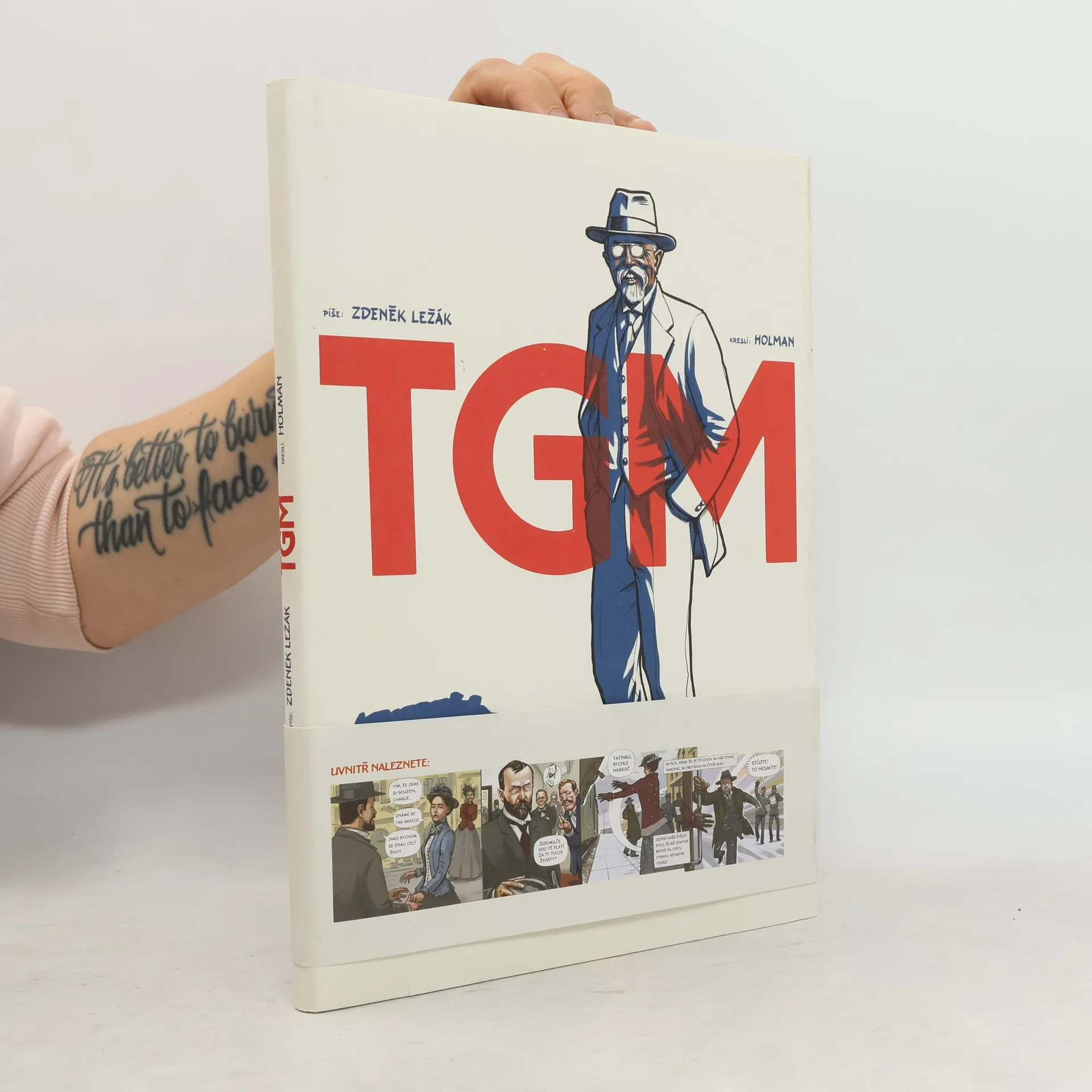 Tomáš Garrigue Masaryk ve stostránkovém životopisném komiksu vzniká k příležitosti 80. výročí úmrtí našeho nejvýznamnějšího státníka 20. století. Komiks sleduje veřejný i soukromý Masarykův život a zaměřuje se na klíčové události, které jej směrovaly k vyvrcholení jeho kariéry coby prvního prezidenta samostatného Československa. Začínáme před jeho narozením a provázíme ho dětstvím, dospíváním i studiemi. Výrazný obrat v Masarykové životě nastává jeho příchodem na pražskou univerzitu v roce 1882, kde se začíná zapojovat do veřejného života. Komiks zmiňuje boje o rukopisy, Hilsnerovu aféru, Masarykův vstup do politiky a konečně i jeho snahy vedoucí k osamostatnění Československa. Významná část komiksu se věnuje působení Masaryka během první světové války a konečně jeho prezidentské éře. V komiksu používá autor prvek vypravěče, samotného Masaryka ve zralém věku, který retrospektivně komentuje svůj život. Tento prvek odkazuje na Čapkovy Hovory s TGM, které jsou významným podkladovým zdrojem části komiksu.