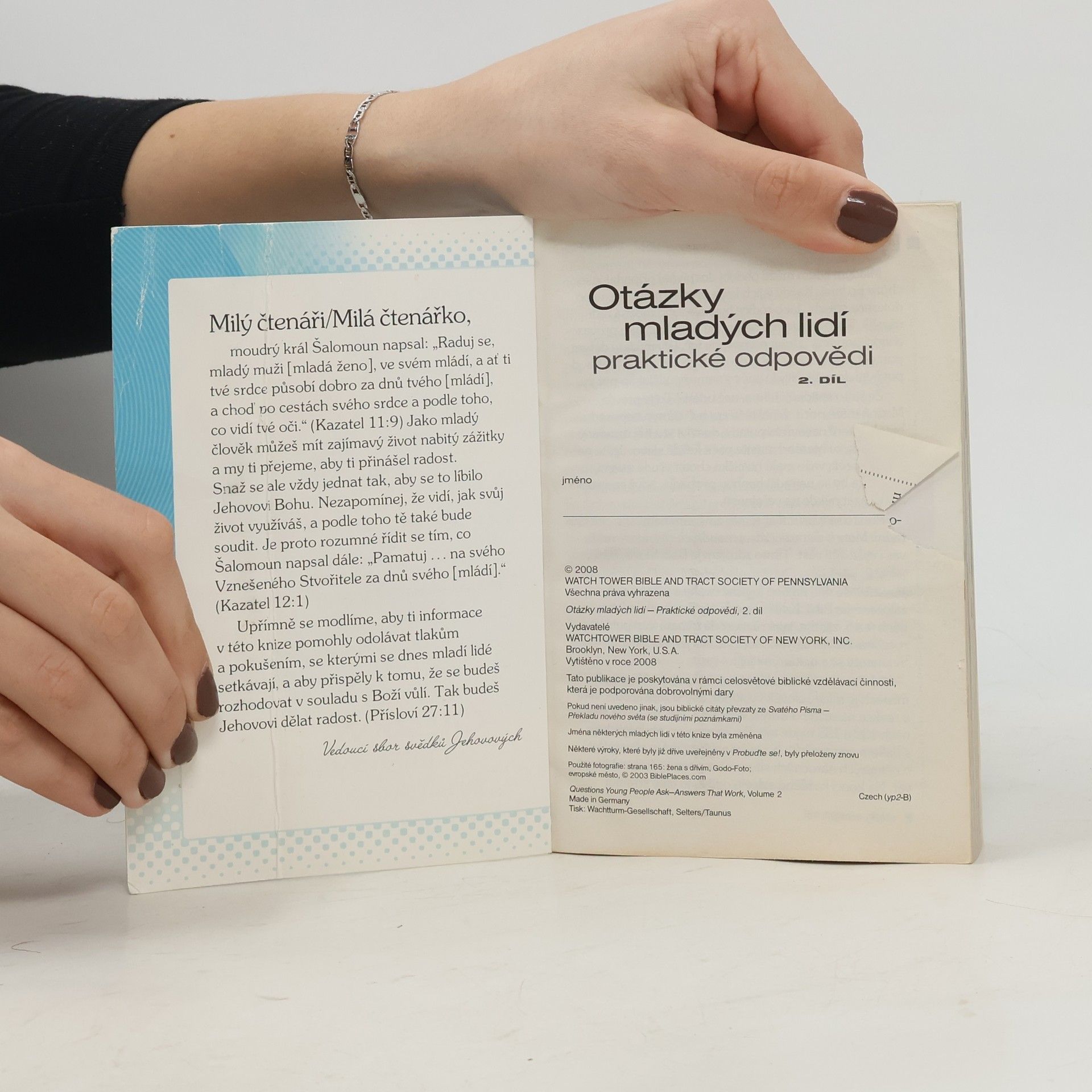 Skladem máme celkem knihy Otázky mladých lidí. Praktické odpovědi 2 (2008).