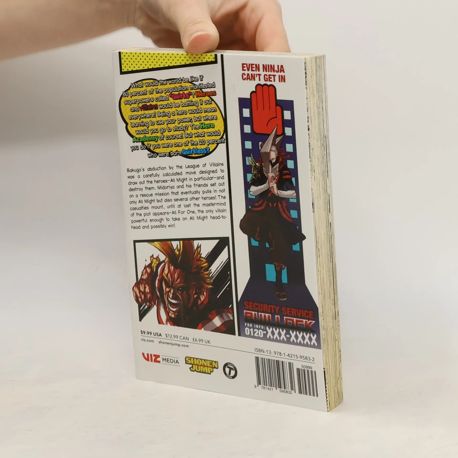 Midoriya inherits the superpower of the world’s greatest hero, but greatness won’t come easy. What would the world be like if 80 percent of the population manifested superpowers called “Quirks”? Heroes and villains would be battling it out everywhere! Being a hero would mean learning to use your power, but where would you go to study? The Hero Academy of course! But what would you do if you were one of the 20 percent who were born Quirkless? Bakugo’s abduction by the League of Villains was a carefully calculated move designed to draw out the heroes—All Might in particular—and destroy them. Midoriya and his friends set out on a rescue mission that eventually pulls in not only All Might but also several other heroes! The casualties mount, until at last the mastermind of the plot appears—All for One, the only villain powerful enough to take on All Might head-to-head and possibly win!