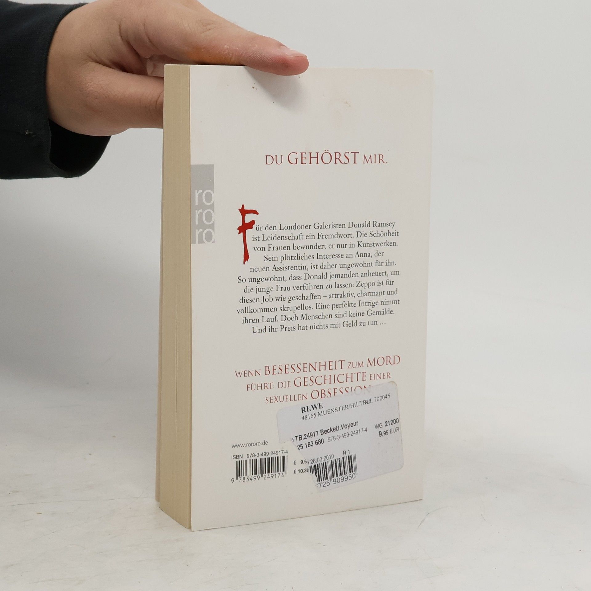 Du gehörst mir.Für den Londoner Galeristen Donald Ramsey ist Leidenschaft ein Fremdwort. Die Schönheit von Frauen bewundert er nur in Kunstwerken. Sein plötzliches Interesse an Anna, der neuen Assistentin, ist daher ungewohnt für ihn. So ungewohnt, dass Donald jemanden anheuert, um die junge Frau verführen zu lassen: Zeppo ist für diesen Job wie geschaffen – attraktiv, charmant und vollkommen skrupellos. Eine perfekte Intrige nimmt ihren Lauf. Doch Menschen sind keine Gemälde. Und ihr Preis hat nichts mit Geld zu tun.Wenn Besessenheit zum Mord führt: Die Geschichte einer sexuellen Obsession.