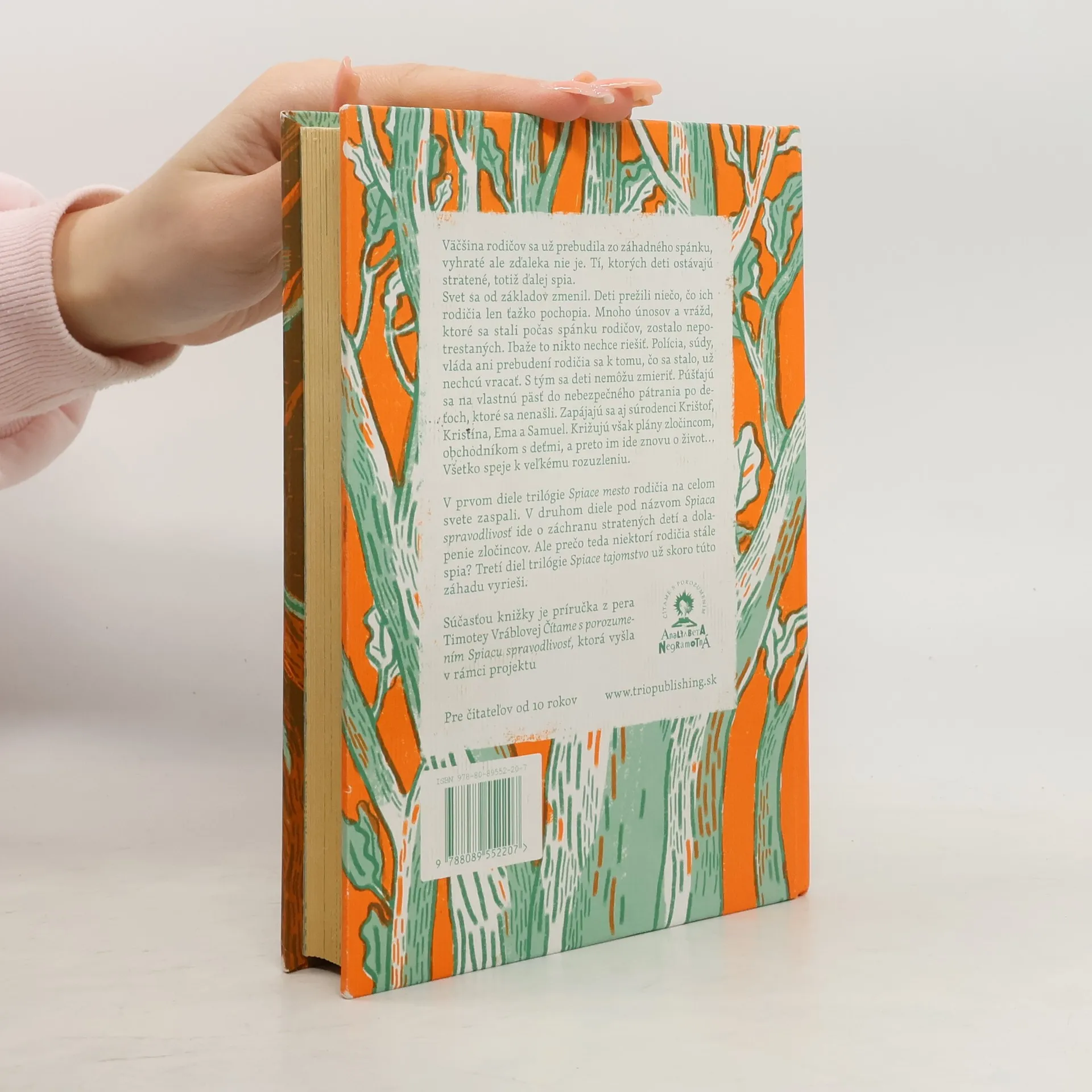 Väčšina rodičov sa už prebudila zo záhadného spánku, vyhraté ale zďaleka nie je. Tí, ktorých deti ostávajú stratené, totiž ďalej spia. Svet sa od základov zmenil. Deti prežili niečo, čo ich rodičia len ťažko pochopia. Mnoho únosov a vrážd, ktoré sa stali počas spánku rodičov, zostalo nepotrestaných. Ibaže to nikto nechce riešiť. Polícia, súdy, vláda ani prebudení rodičia sa k tomu, čo sa stalo, už nechcú vracať. S tým sa deti nemôžu zmieriť. Púšťajú sa na vlastnú päsť do nebezpečného pátrania po deťoch, ktoré sa nenašli. Zapájajú sa aj súrodenci Krištof, Kristína, Ema a Samuel. Križujú však plány zločincom, obchodníkom s deťmi, a preto im ide znovu o život... Všetko speje k veľkému rozuzleniu. V prvom dieli trilógie Spiace mesto rodičia na celom svete zaspali. V druhom dieli Spiaca spravodlivosť ide o záchranu stratených detí a dolapenie zločincov. Ale prečo teda niektorí rodičia stále spia? Tretí diel trilógie Spiace tajomstvo už skoro túto záhadu vyrieši.