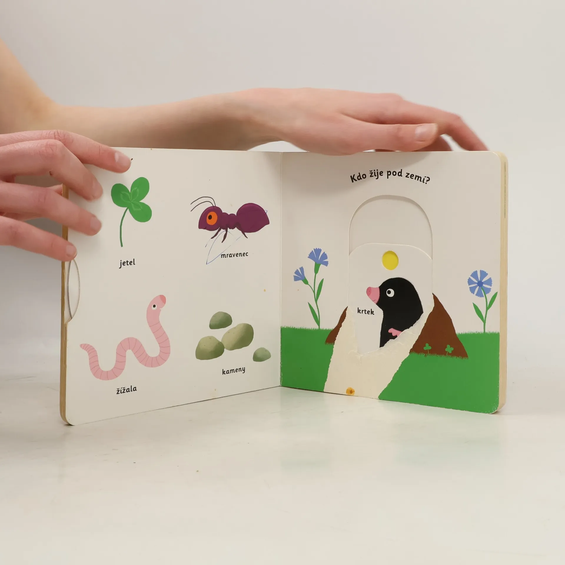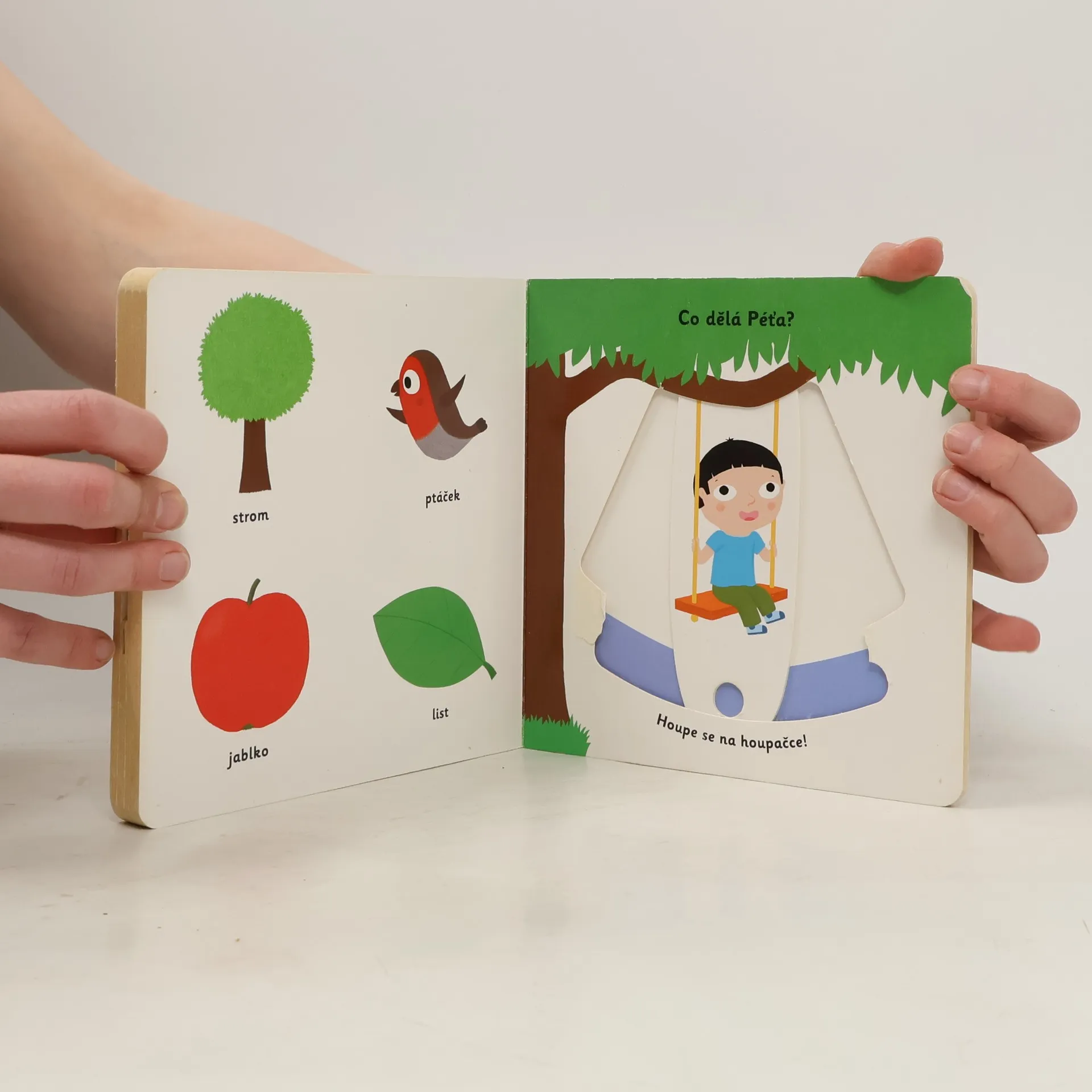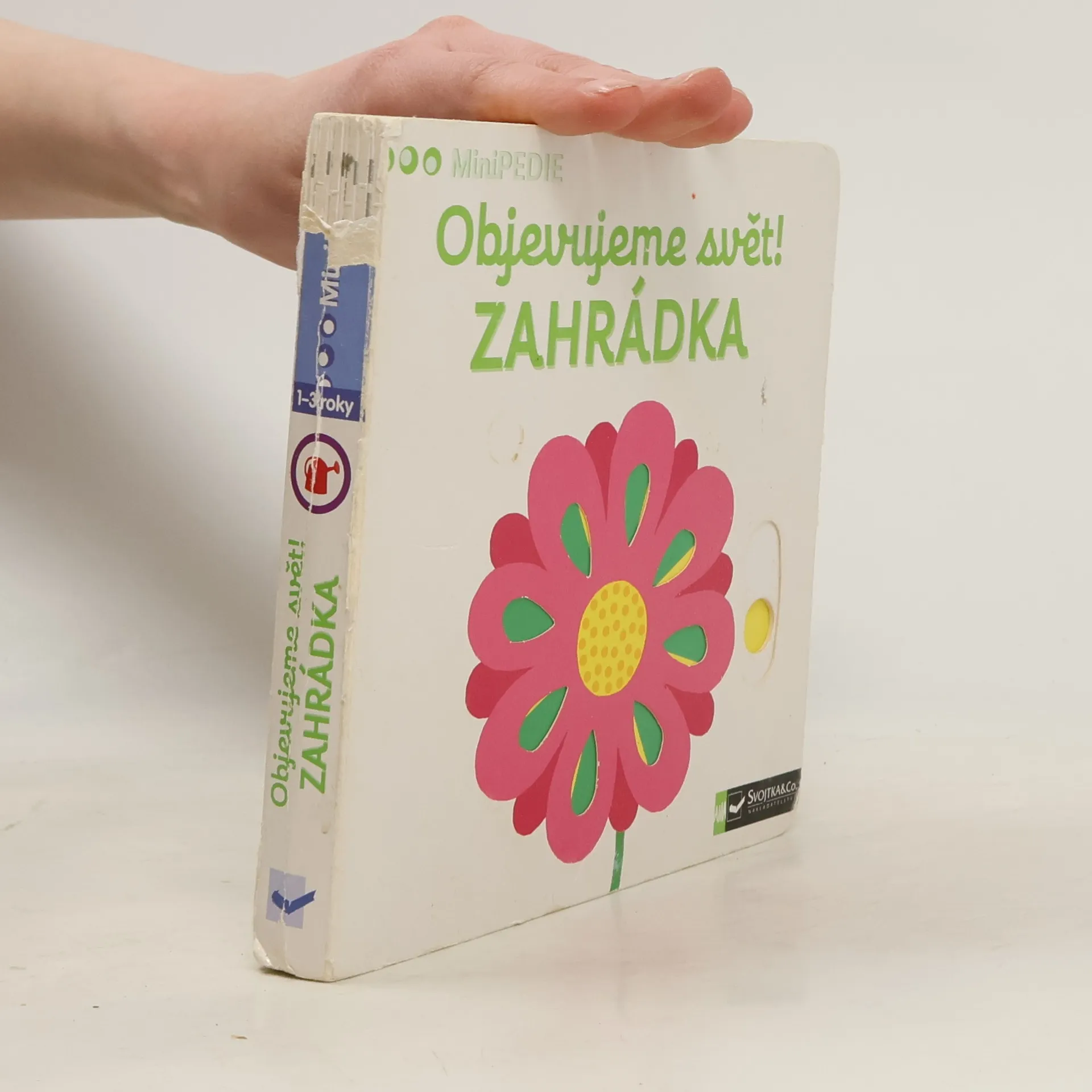 Objevovat, co všechno lze vidět na zahrádce, je s tímto leporelem tak zábavné! Kdo létá z květu na květ? Kdo žije pod zemí? Čím Eliška zalévá rostliny? Co dělá Péťa na houpačce? Stačí jen vložit prstík do správného otvoru, lehce posunout nebo otočit ve směru šipky a hned bude váš malý objevitel nebo objevitelka znát odpovědi. Leporelo je určeno pro nejmenší děti od jednoho roku a má pevné stránky s posuvnými prvky, a tak si naši nejmenší mohou při prohlížení a pojmenovávání procvičit i jemnou motoriku.