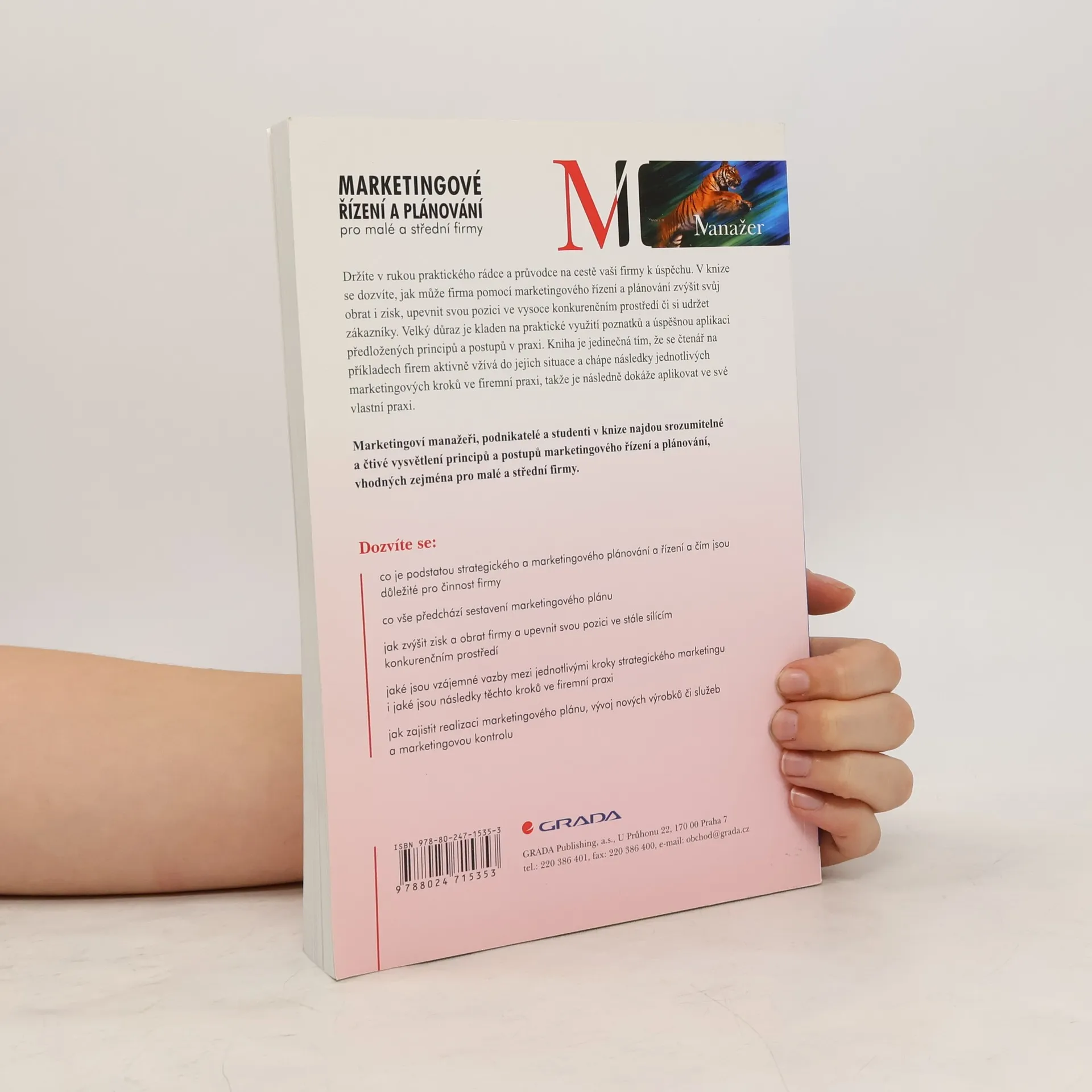 Kniha je praktickým rádcem a průvodcem na cestě vaší firmy k úspěchu. Dozvíte se, jak může firma pomocí marketingového řízení a plánování zvýšit svůj obrat i zisk, upevnit svou pozici ve vysoce konkurenčním prostředí nebo si udržet zákazníky. Velký důraz je kladen na praktické využití poznatků a úspěšnou aplikaci předložených principů a postupů v praxi. Kniha je jedinečná tím, že se čtenář na příkladech firem aktivně vžívá do jejich situace a chápe následky jednotlivých marketingových kroků ve firemní praxi, takže je následně dokáže aplikovat ve své vlastní praxi. Marketingoví manažeři, podnikatelé a studenti v knize najdou srozumitelné a čtivé vysvětlení principů a postupů marketingového řízení a plánování, vhodných zejména pro malé a střední firmy.