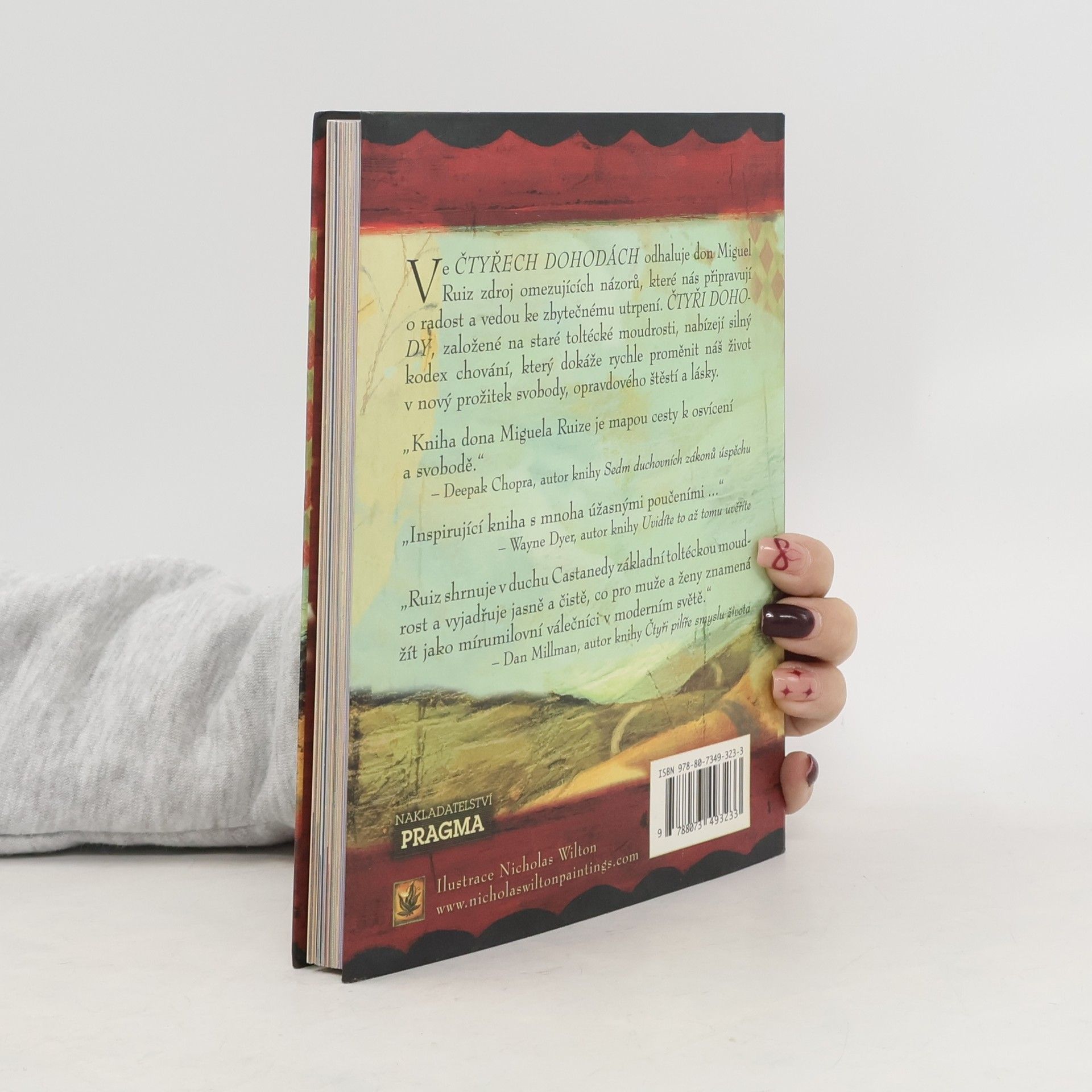 Ilustrovaná kniha. Vychází k 15. výročí prvního vydání. Ve Čtyřech dohodách odhaluje Don Miguel Ruiz zdroj omezujících názorů, které nás připravují o radost a vedou ke zbytečnému utrpení. Čtyři dohody, založené na staré toltécké moudrosti, nabízejí silný kód chování, který dokáže rychle proměnit náš život v nový prožitek svobody, opravdového štěstí a lásky. Ruiz shrnuje v duchu Castanedy základní toltéckou moudrost a vyjadřuje jasně a čistě, co pro muže a ženy znamená žít jako mírumilovní válečníci v moderním světě. V toltécké tradici vede naguál člověka k osobní svobodě. Don Miguel Ruiz je naguál z rodu Rytířů orla a věnuje se předávání svých znalostí učení starých Toltéků.
