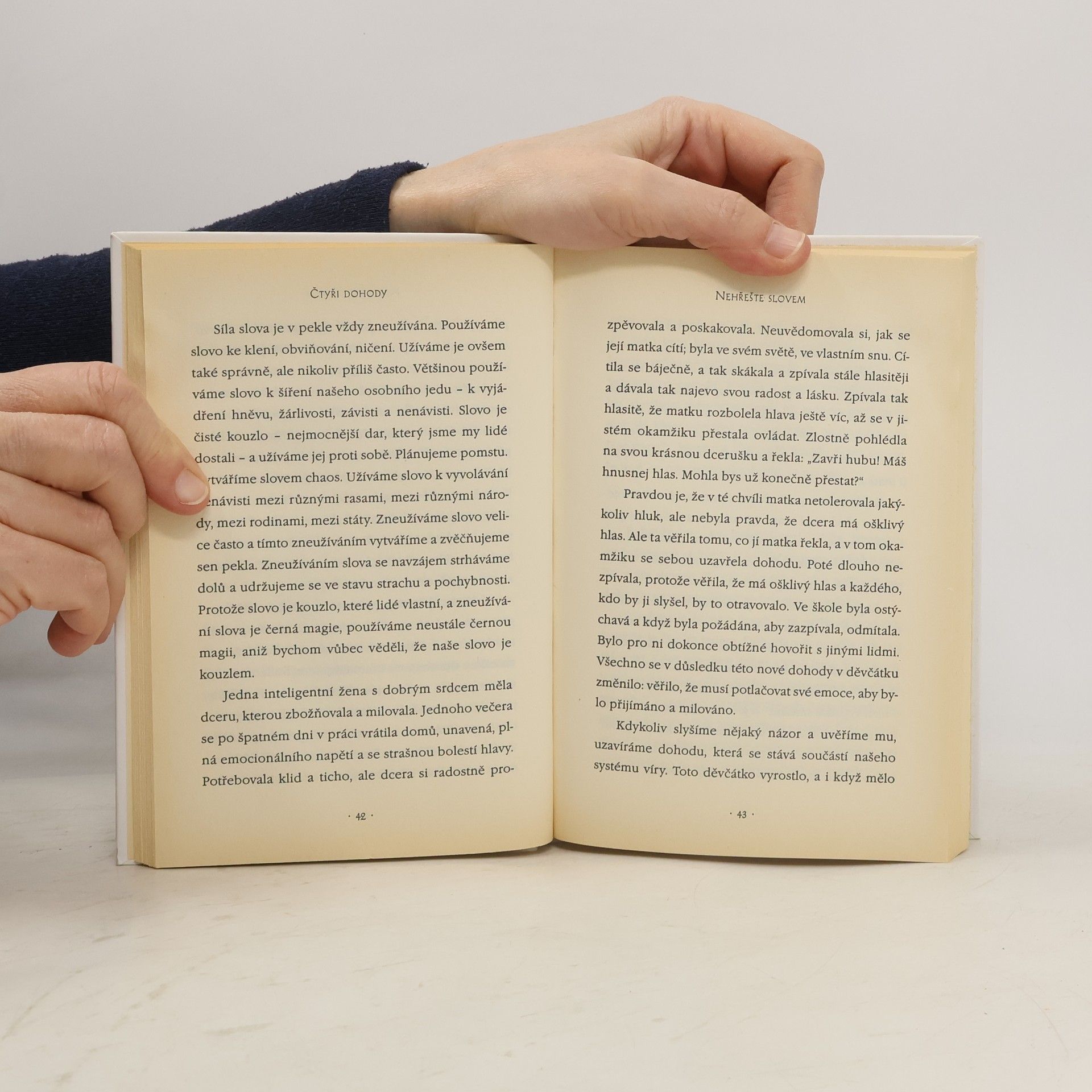 Praktický průvodce osobní svobodou. Ve Čtyřech dohodách odhaluje don Miguel Ruiz zdroj omezujících názorů, které nás připravují o radost a vedou k zbytečnému utrpení. Čtyři dohody, založené na staré toltécké moudrosti, nabízejí silný kód chování, který dokáže rychle proměnit náš život v nový prožitek svobody, opravdového štěstí a lásky.