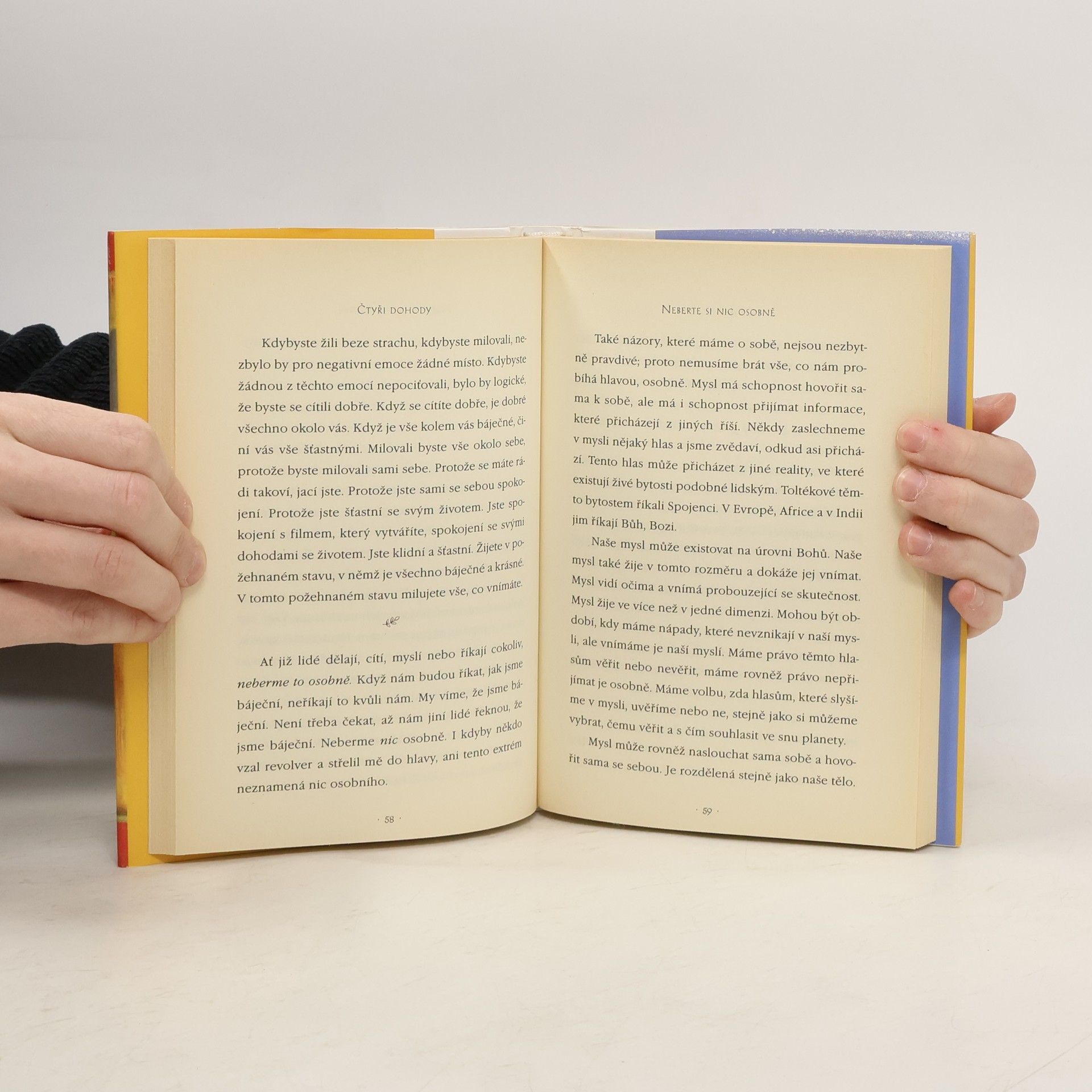Praktický průvodce osobní svobodou. Ve Čtyřech dohodách odhaluje don Miguel Ruiz zdroj omezujících názorů, které nás připravují o radost a vedou k zbytečnému utrpení. Čtyři dohody, založené na staré toltécké moudrosti, nabízejí silný kód chování, který dokáže rychle proměnit náš život v nový prožitek svobody, opravdového štěstí a lásky.