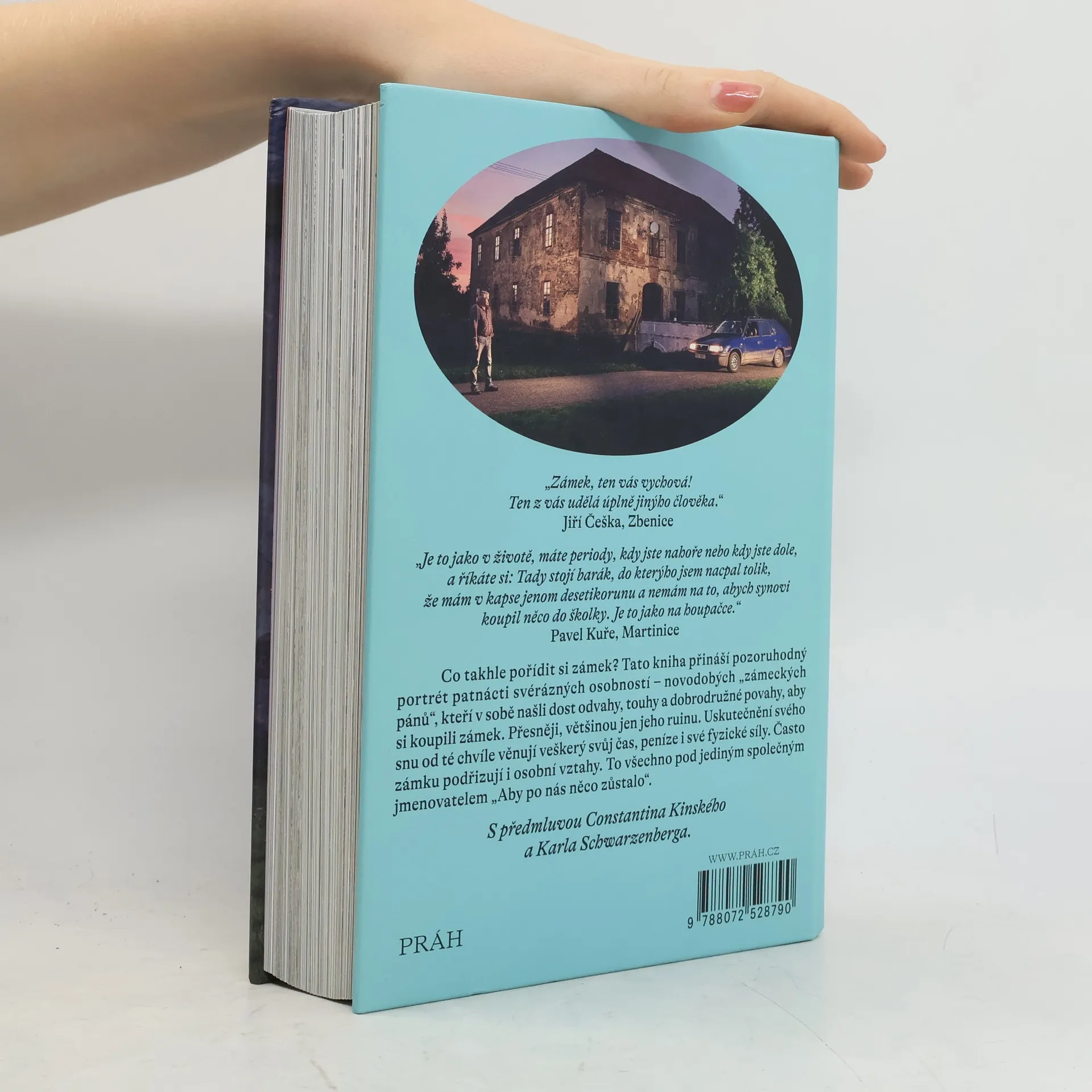 „Zámek, ten vás vychová! Ten z vás udělá úplně jinýho člověka.“ Jiří Češka, Zbenice „Je to jako v životě, máte periody, kdy jste nahoře nebo kdy jste dole, a říkáte si: Tady stojí barák, do kterýho jsem nacpal tolik, že mám v kapse jenom desetikorunu a nemám na to, abych synovi koupil něco do školky. Je to jako na houpačce." Pavel Kuře, Martinice S předmluvou Constantina Kinského a Karla Schwarzenberga. Co takhle pořídit si zámek? Tato kniha přináší pozoruhodný portrét patnácti svérázných osobností – novodobých „zámeckých pánů“, kteří v sobě našli dost odvahy, touhy a dobrodružné povahy, aby si koupili zámek. Přesněji, většinou jen jeho ruinu. Uskutečnění svého snu od té chvíle věnují veškerý svůj čas, peníze i své fyzické síly. Často zámku podřizují i osobní vztahy. To všechno pod jediným společným jmenovatelem Aby po nás něco zůstalo. Rozhovory a fotografické portréty autorského týmu česko-německé fotografky a publicistky Kateřiny Sýsové a spisovatelky, editorky a publicistky Anny Novotné vznikaly několik let. Odbornou poradkyní jim byla kunsthistorička Monika Švec Sybolová.