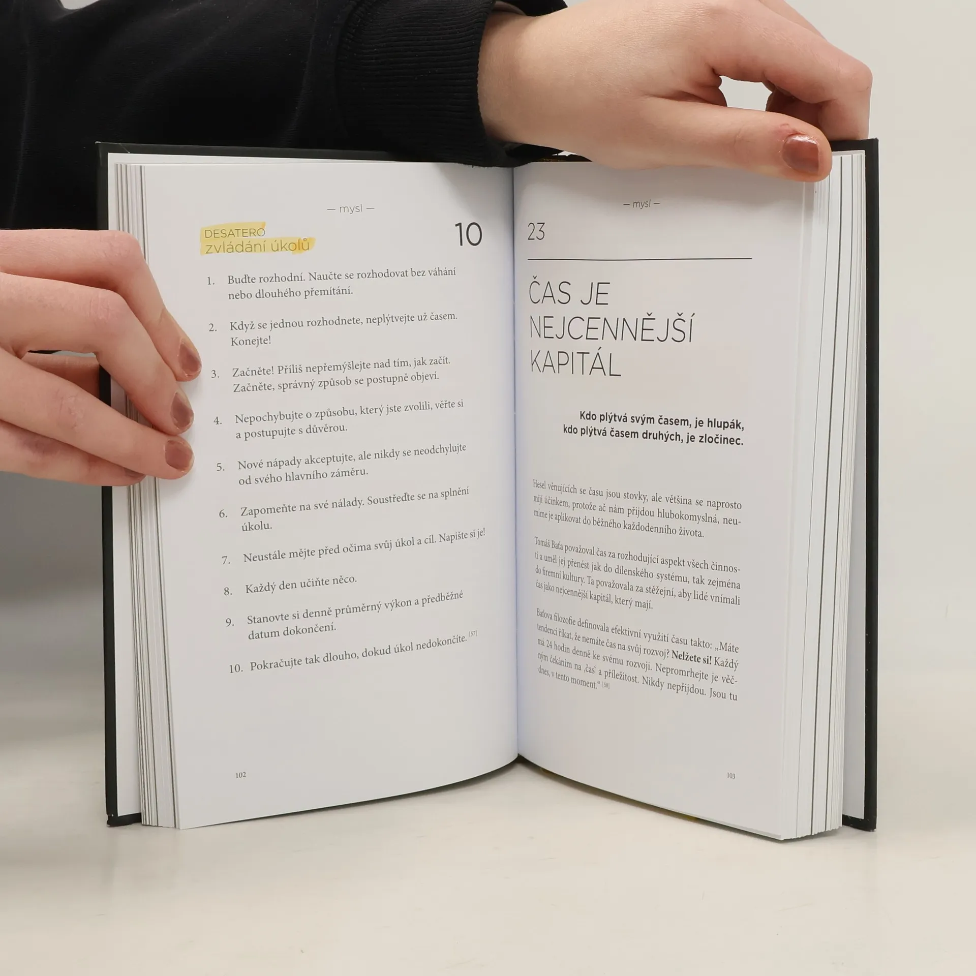 Tomáš Baťa, známý podnikatel, vytvořil světové obuvnické impérium a vyvinul propracovaný systém, který podporoval efektivní podnikání a duševní zdraví svých zaměstnanců. Kniha je rozdělena do čtyř částí, které se zaměřují na tělo, mysl, duši a vztahy. Baťa dlouhodobě podporoval rozvoj svých spolupracovníků, aby se zdokonalovali nejen profesně, ale i osobnostně. Publikace nabízí nový pohled na baťovskou filozofii a praktické rady, jak budovat sebe sama a měnit životní postoje podle jeho principů. Obsahuje také baťovská desatera, jako jsou zásady duševního zdraví a zdravého spánku, doplněné krátkými příběhy, které odhalují podstatu Baťovy osobnosti. Mnoho zásad vychází z jeho osobních zkušeností, které ukazují jeho vize a emoce. Autorka Gabriela Končitíková, která se výzkumu baťovské historie věnuje čtrnáct let, přibližuje, jak propojit pracovní a osobní sféru podle baťovských principů. Baťa věřil, že lidé na vedoucích pozicích by měli mít přehled o osobním životě svých zaměstnanců, aby je mohli inspirovat. Dnes se často diskutuje o rovnováze mezi pracovním a osobním životem, a Baťa měl jasný názor na potřebu vymezeného času na práci i odpočinek.